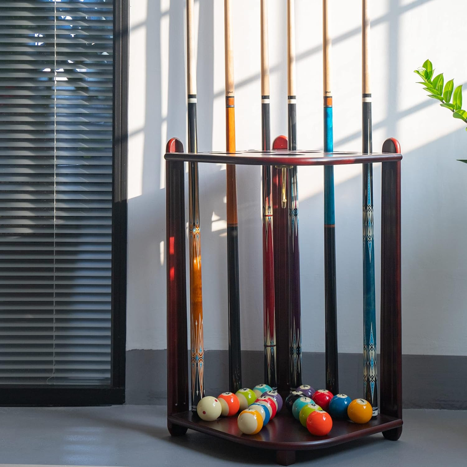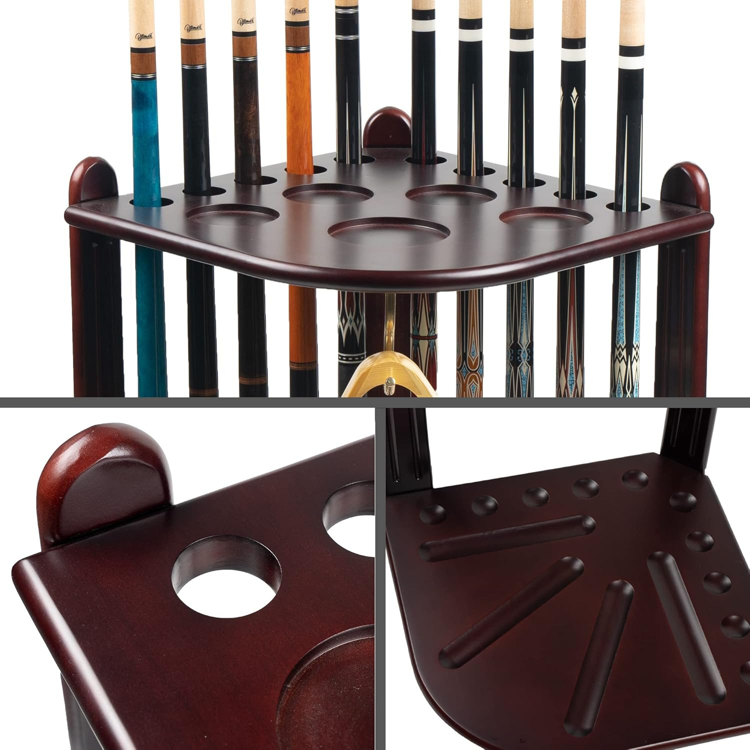 Pool Stick Holder Floor Stand 10 Cues Solid Wood Billiard Pool Cue Rack Mahogany