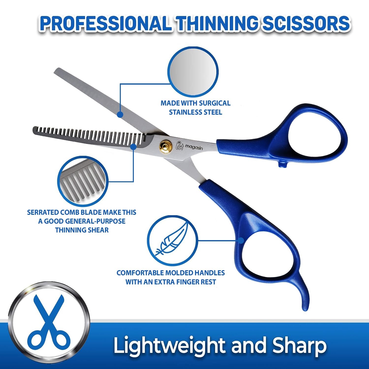 PET MAGASIN Professional Dog Grooming Scissors Set - Curved Thinning Blue