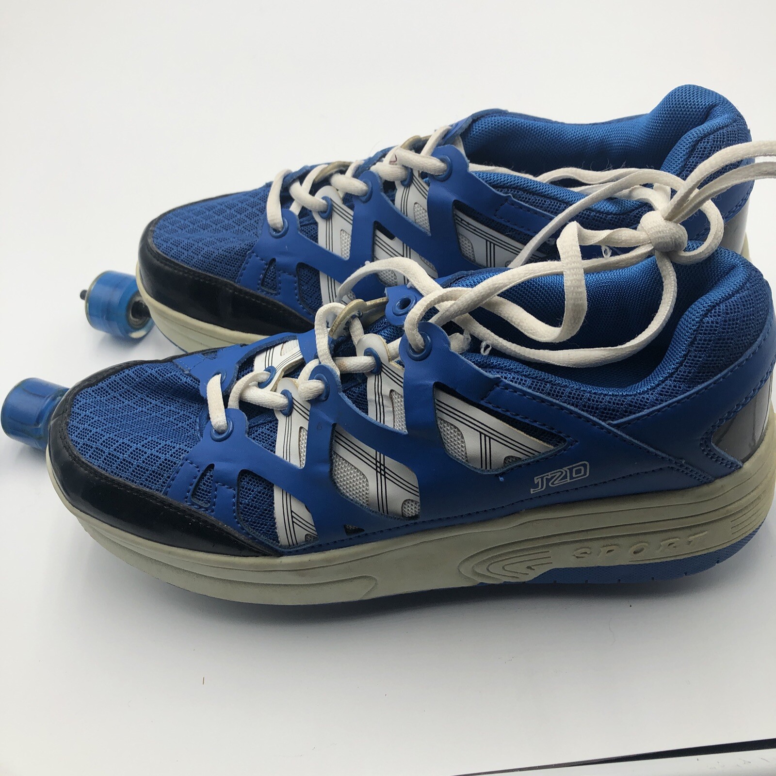 Jiandian Roller Shoes Size 7.5 Blue White J2D Retractable With Extra Wheels