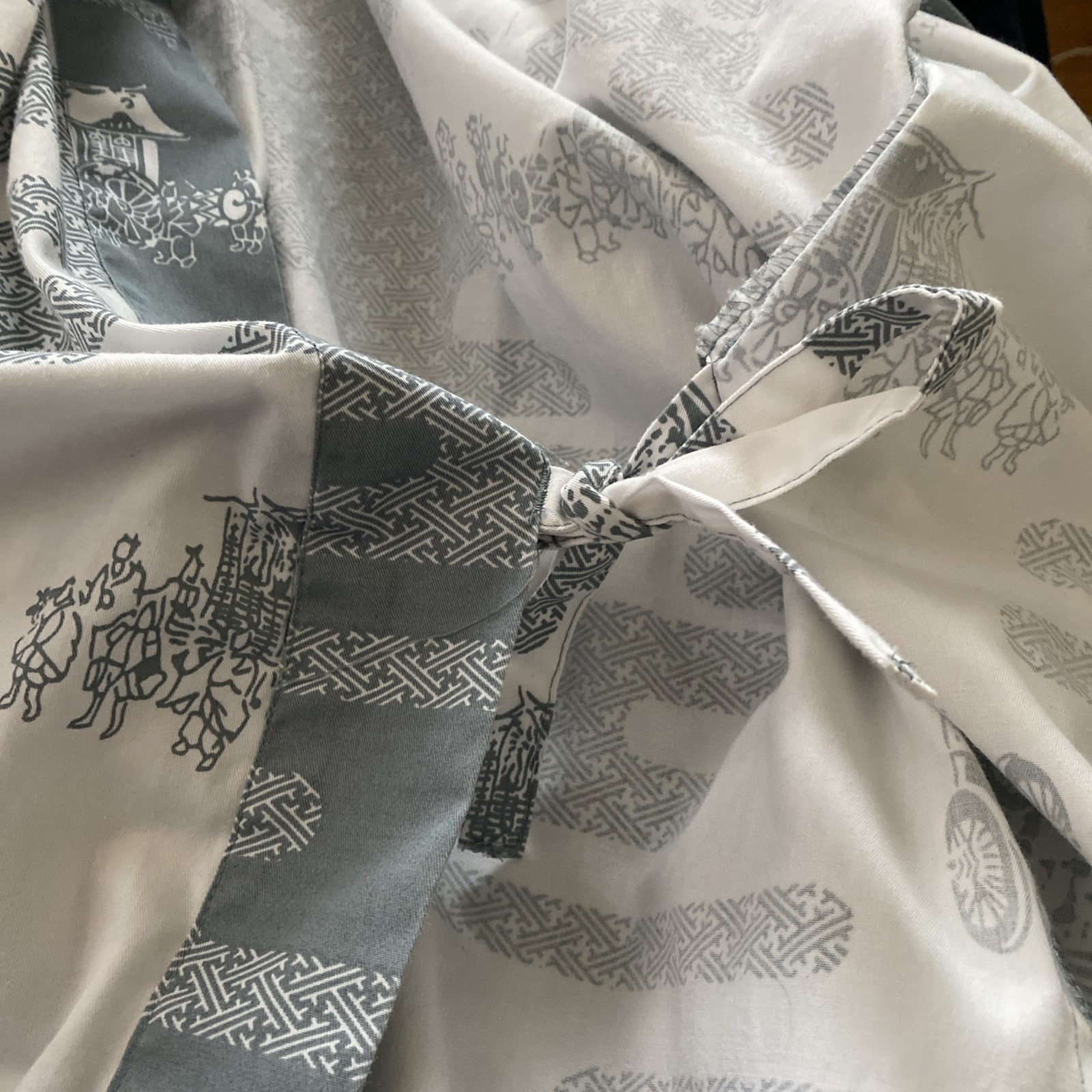 Ono Co Japanese Belted Kimono Robe XL White And Gray Cotton And Polyester READ