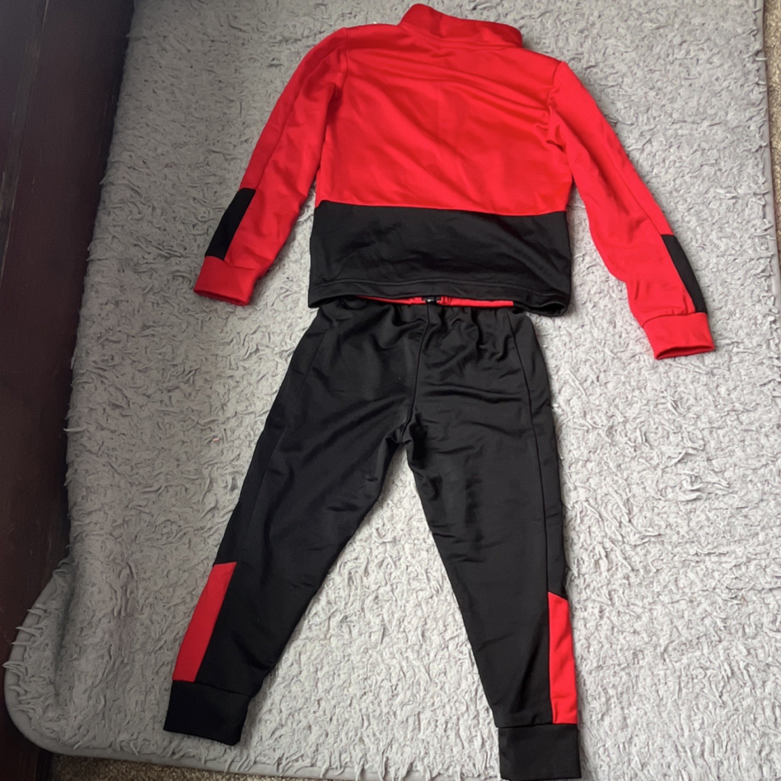 как выглядит Nike Boys 4T Red Black Colorblock Tracksuit Jacket Pants Set Sports Logo Zip фото