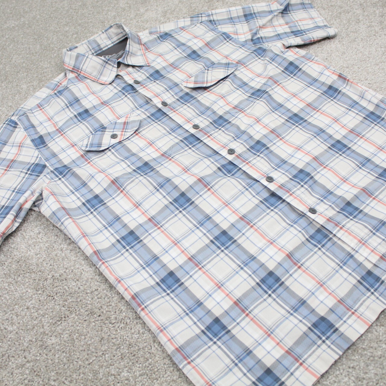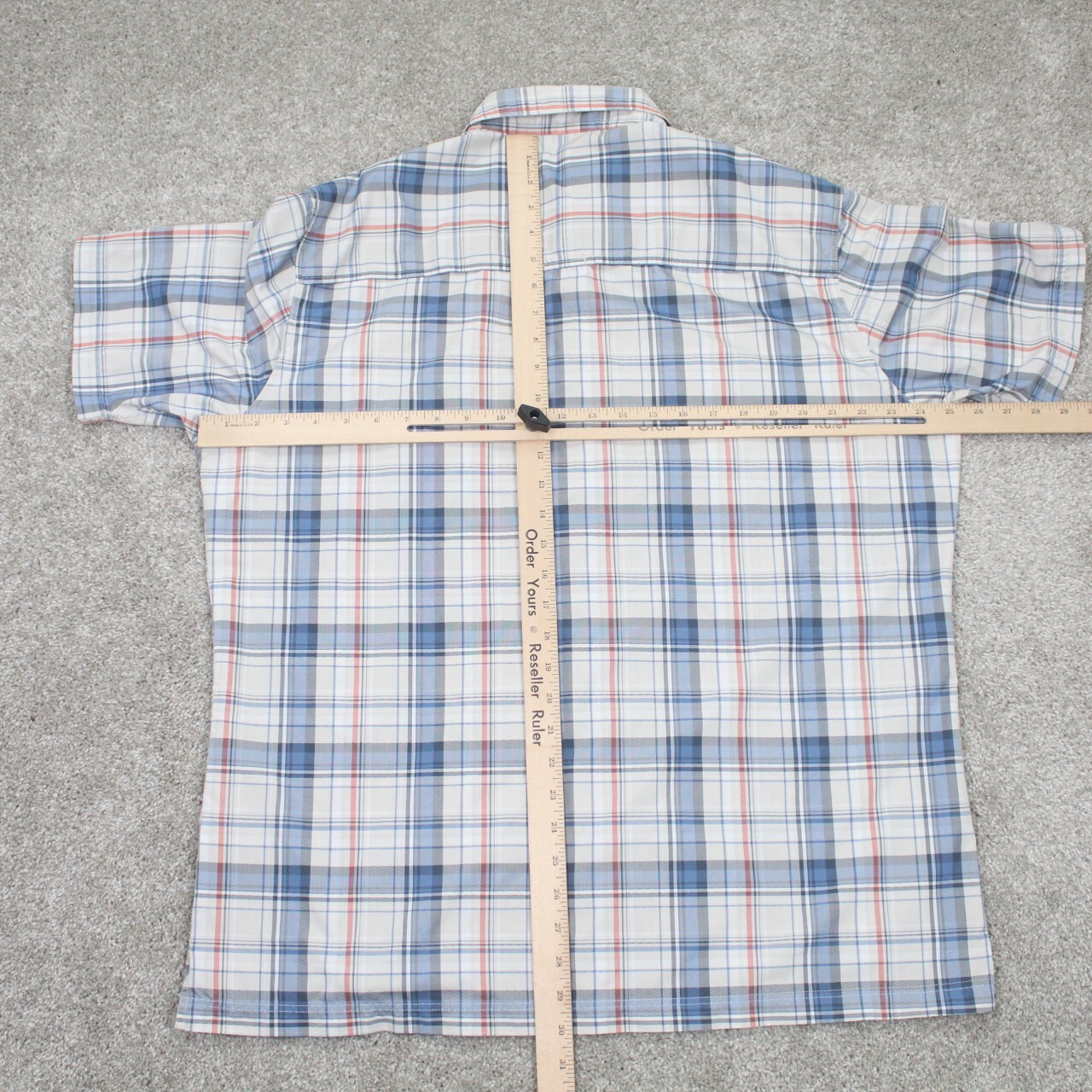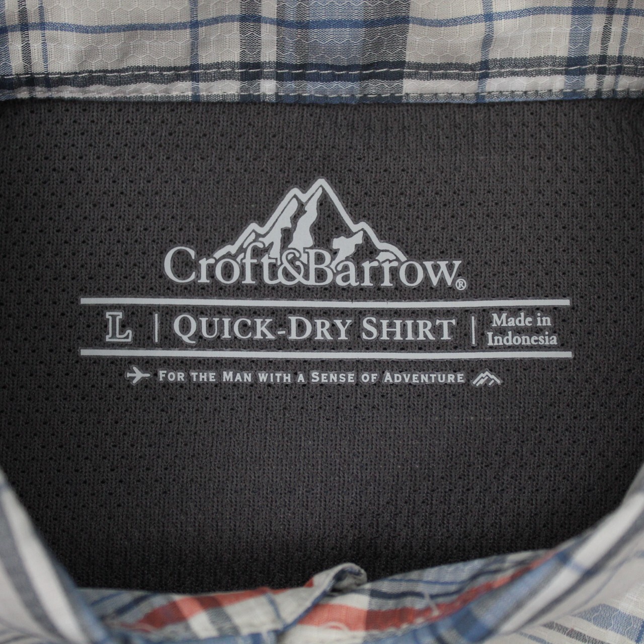 Croft Barrow Quick Dry Shirt Mens Large Blue/Gray/Red 100 Poly S/S Button Up