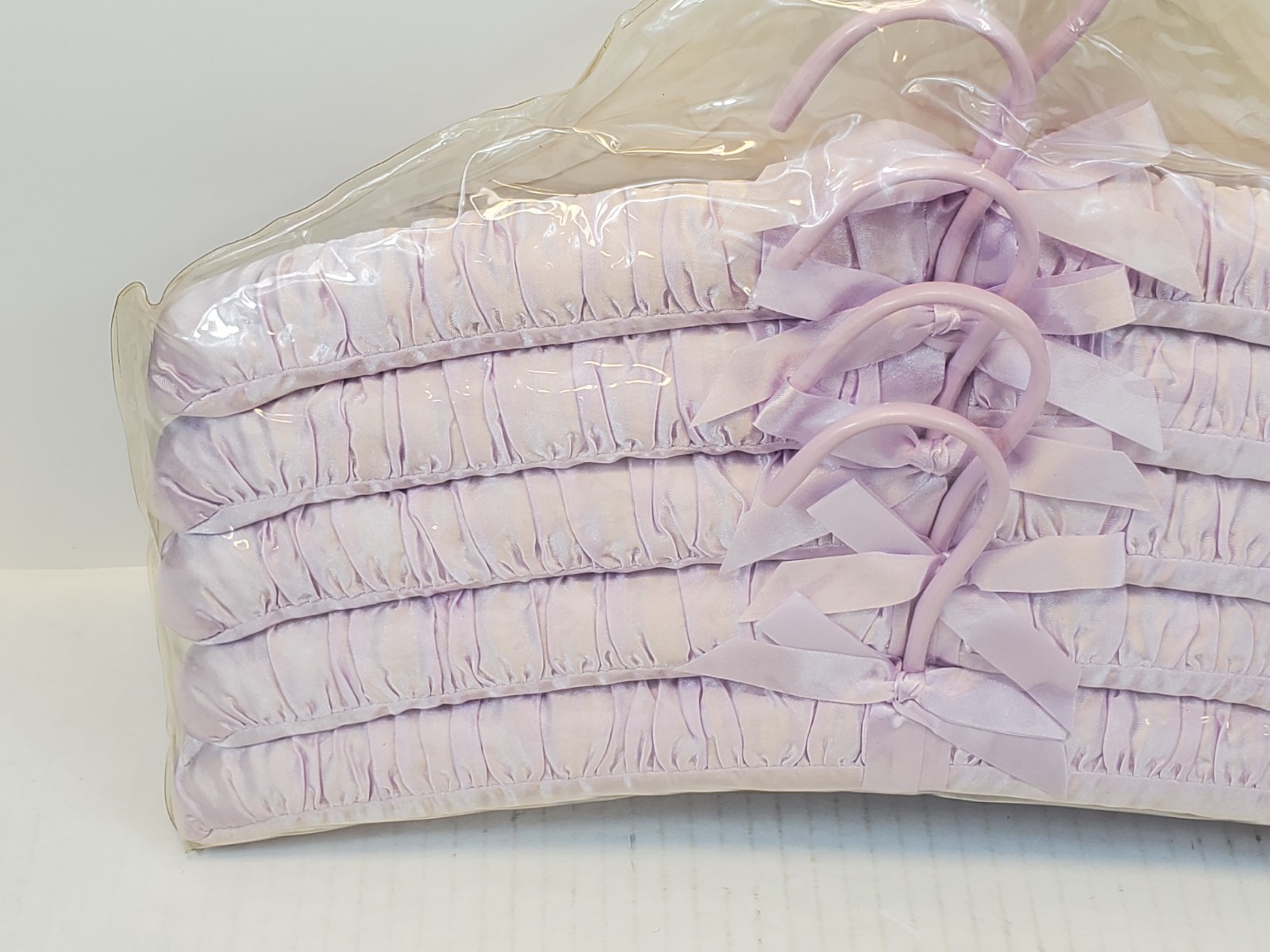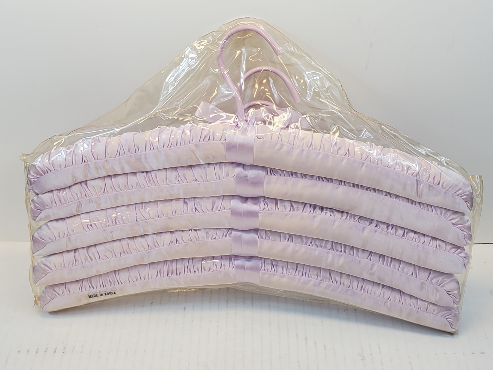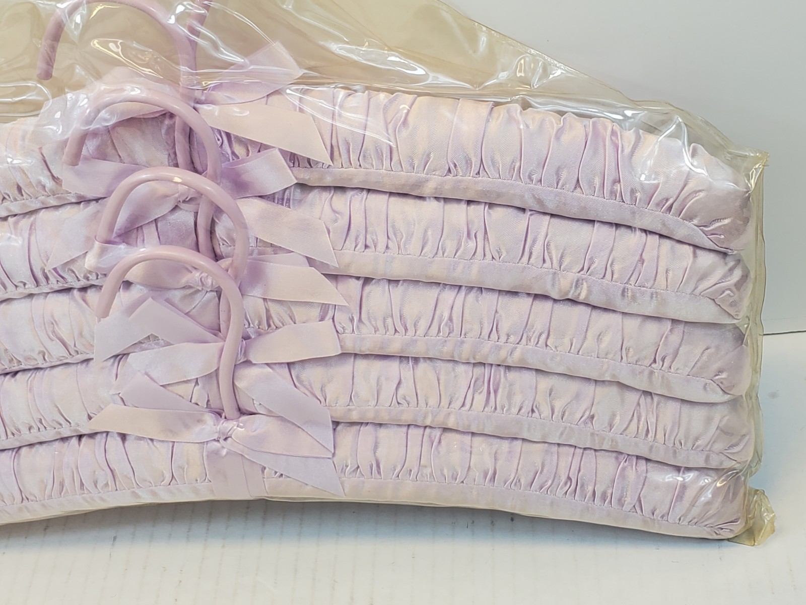 как выглядит Vintage Purple Satin Covered Fabric Padded Clothes Hangers NewSet Of 5 фото
