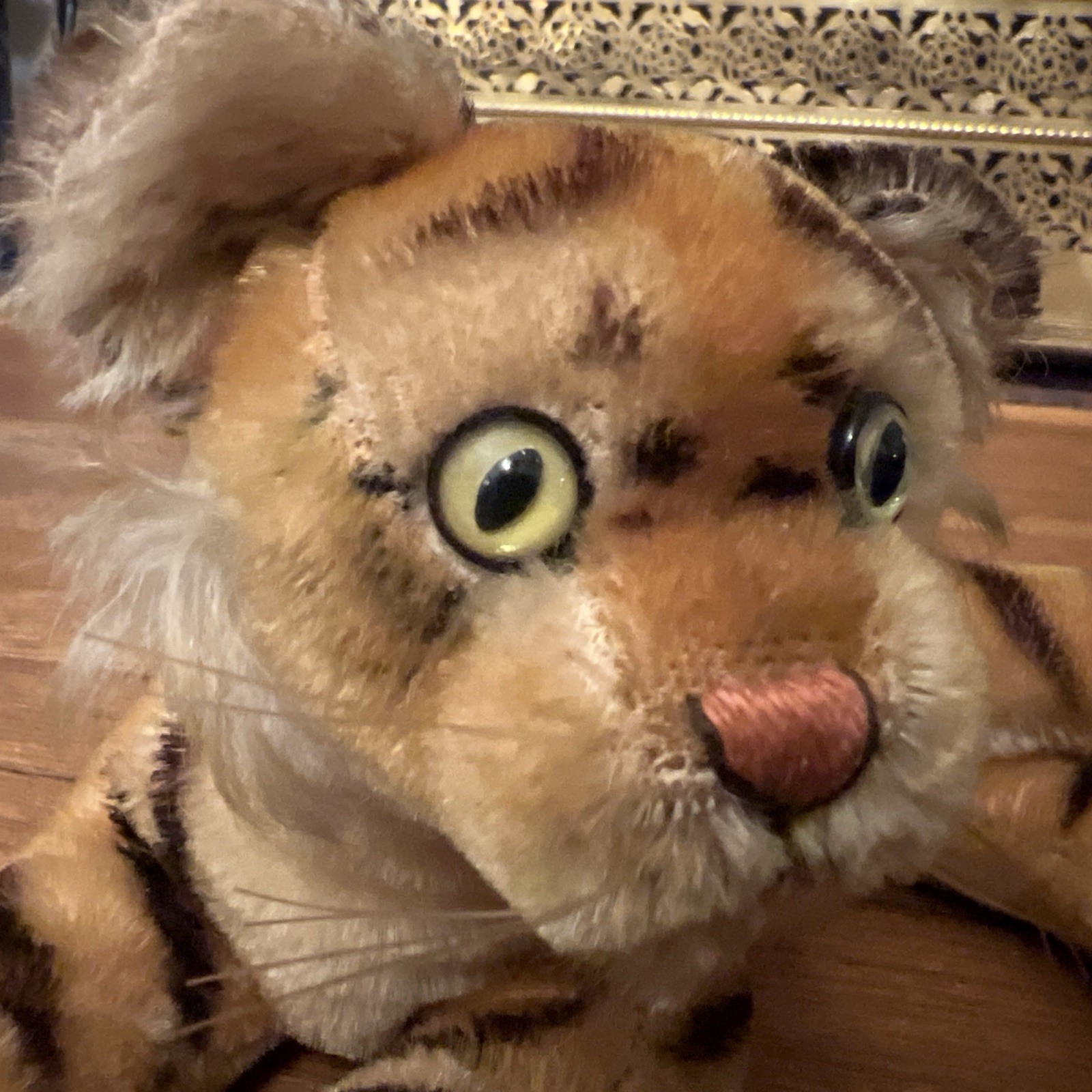 как выглядит Vintage STEIFF LYING TIGER 14 Germany Mohair Gold Eyes 1950s No tag фото