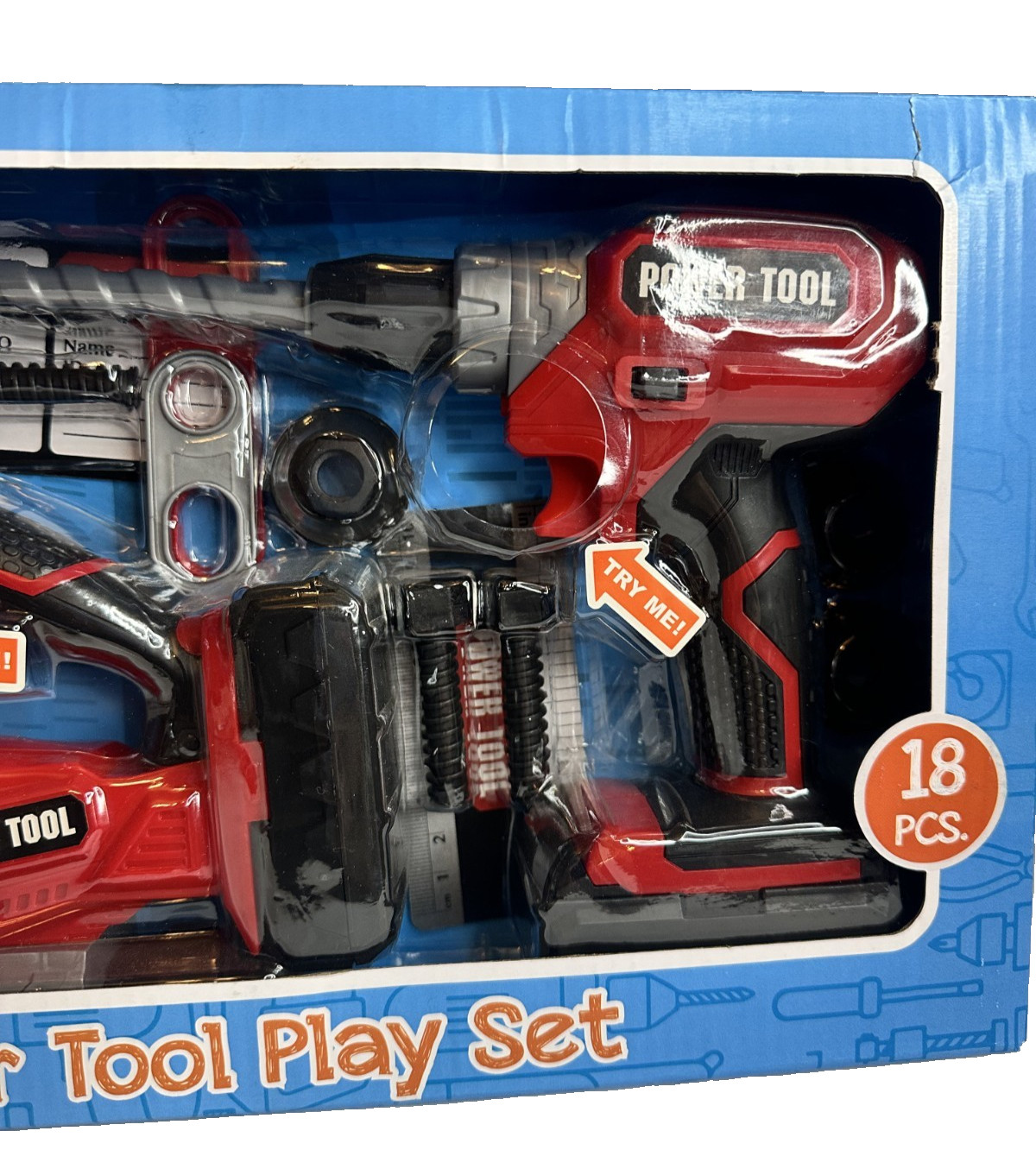 Kids Power Tool Play Set- Lights, Sounds Motorized Action Battery Pack- 18pcs