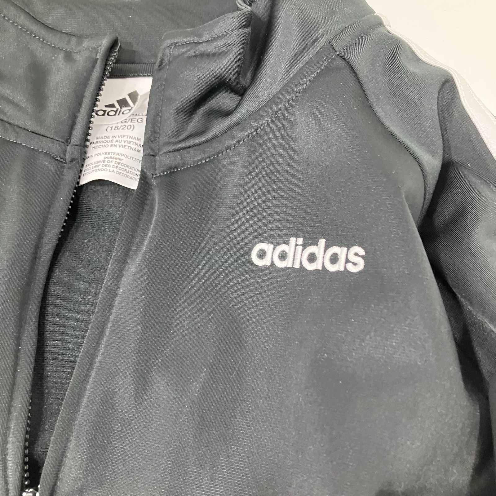 adidas Youth XL 18/20 Track Jacket Black White Full Zip Athletic Pockets