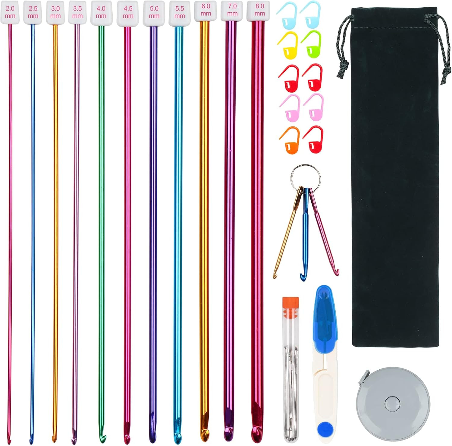 Aeelike 35Pcs Tunisian Crochet Hook Set, 11Pcs Aluminum Crochet Hooks B-L Afghan