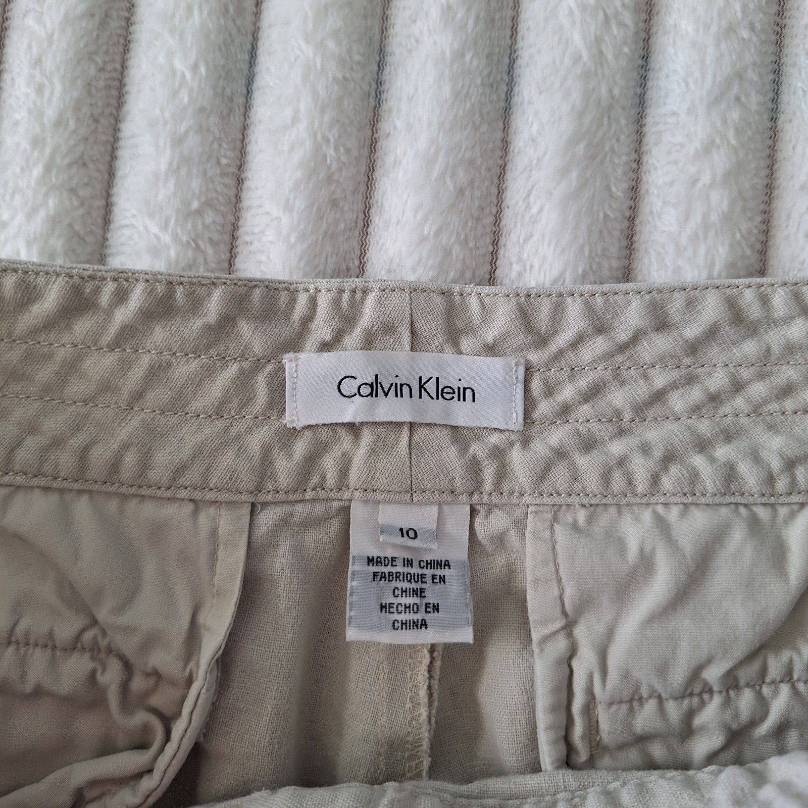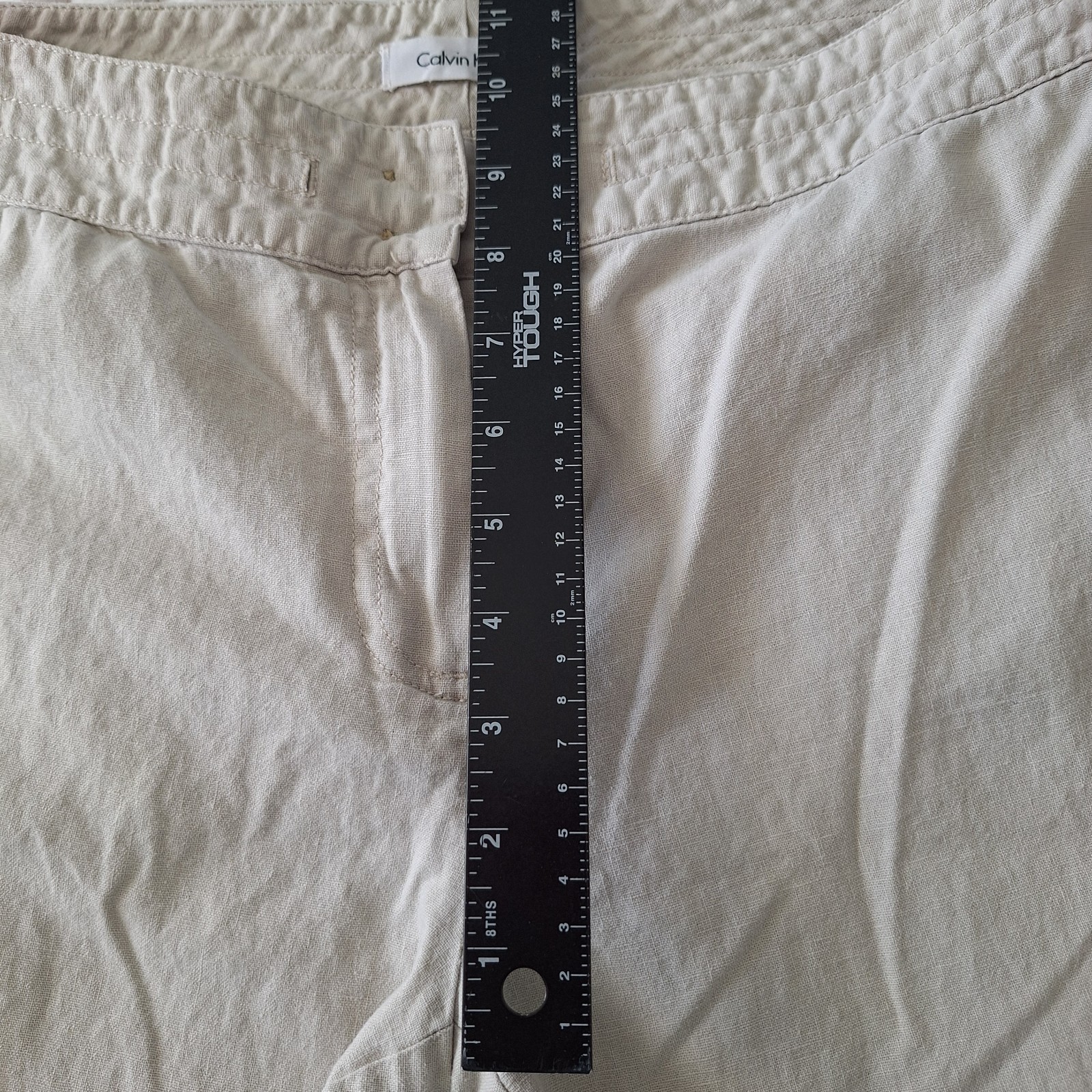 как выглядит Calvin Klein Linen Blend St Leg Trouser Pants Womens 10 Oatmeal Coastal... фото