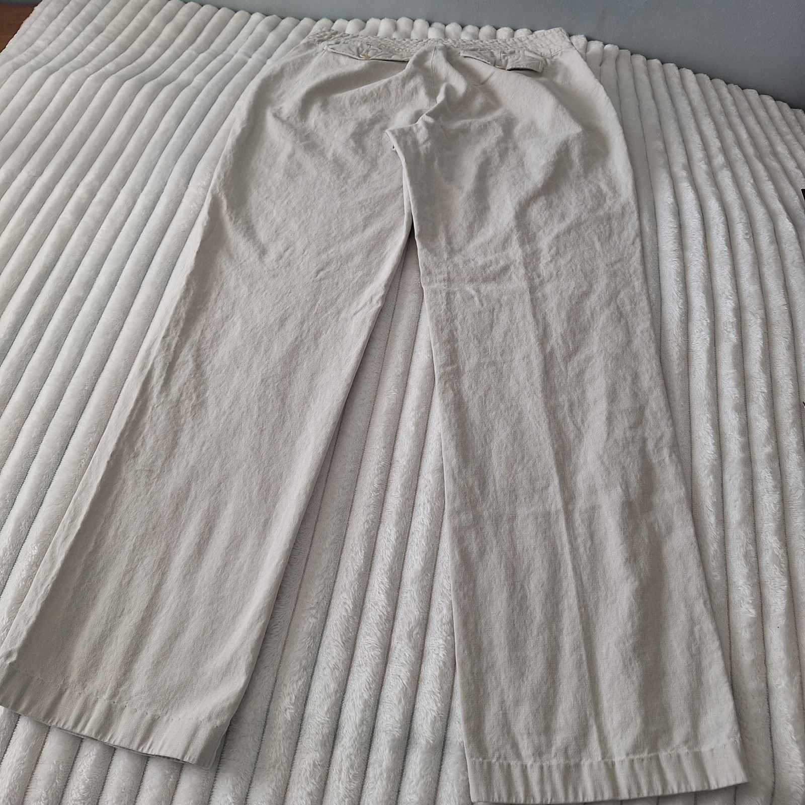 Calvin Klein Linen Blend St Leg Trouser Pants Womens 10 Oatmeal Coastal...