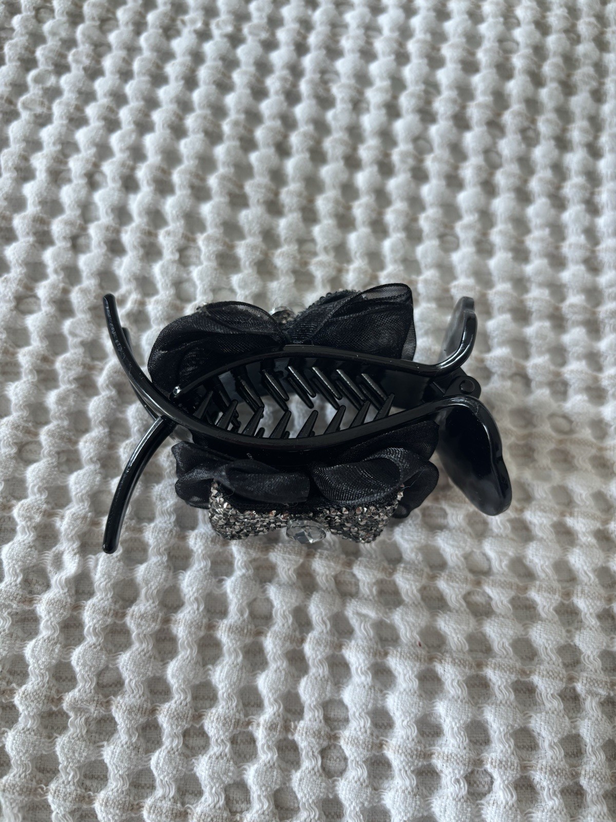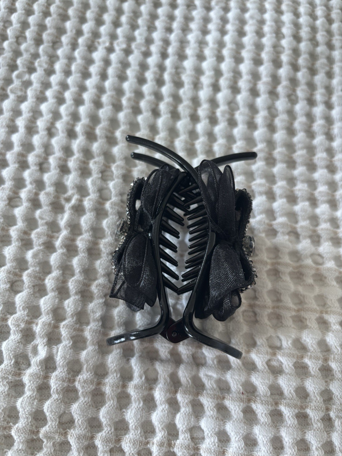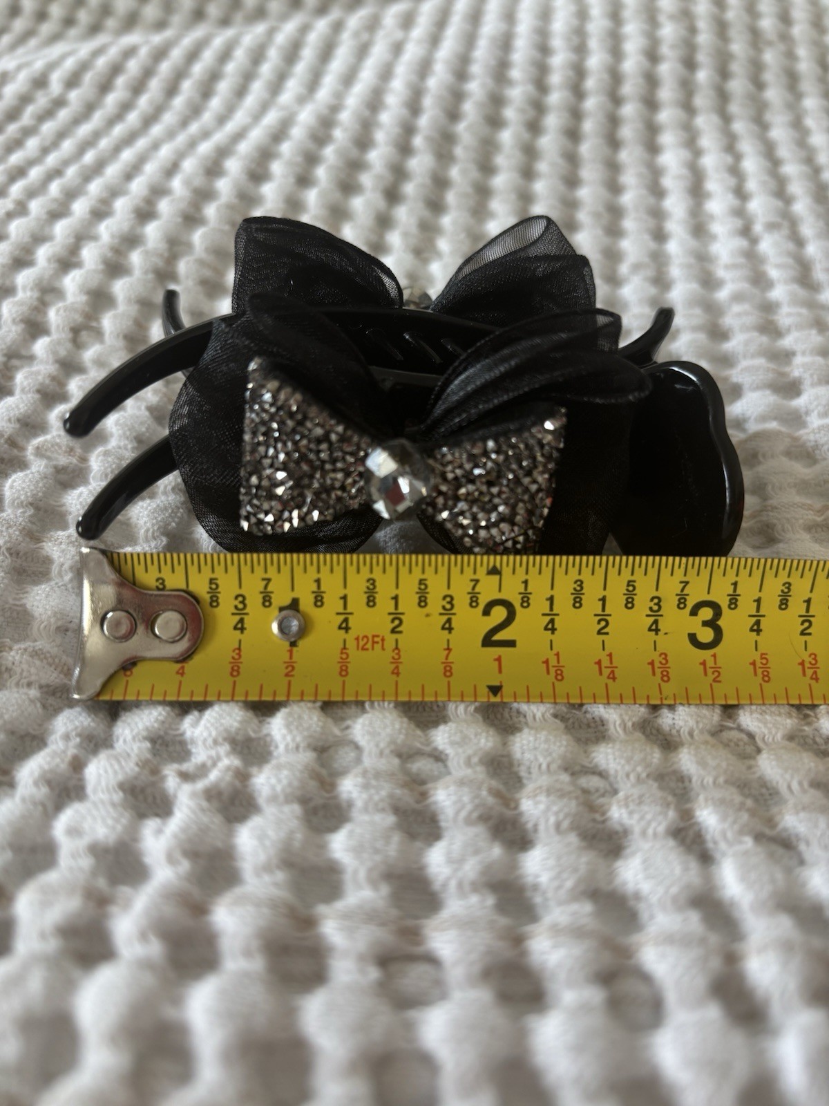 Ponytail Bun Hair Claw Clip, Rhinestone Black Bow Tie