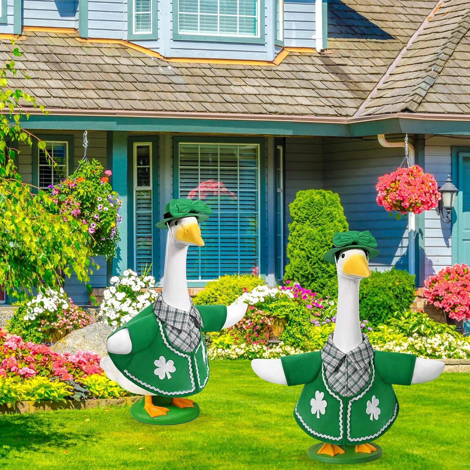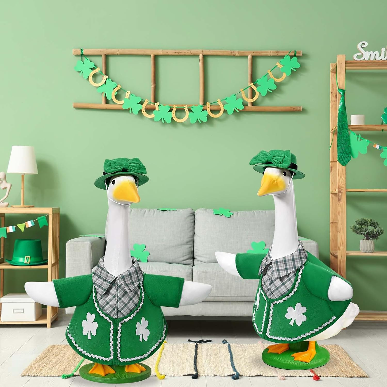 St. Patrick's Day Goose Outfits Irish Clover Porch Goose Clothes Fits 23 Cement