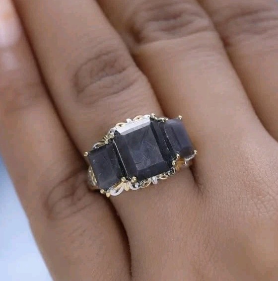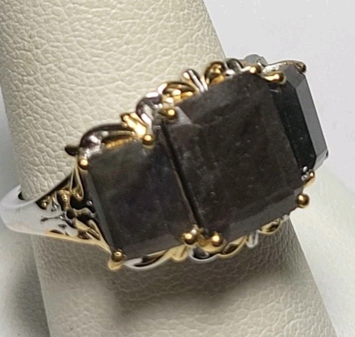 как выглядит Silver Sapphire 3 Stone Ring in Vermeil YG and Platinum Over Sterling Silver Sz9 фото