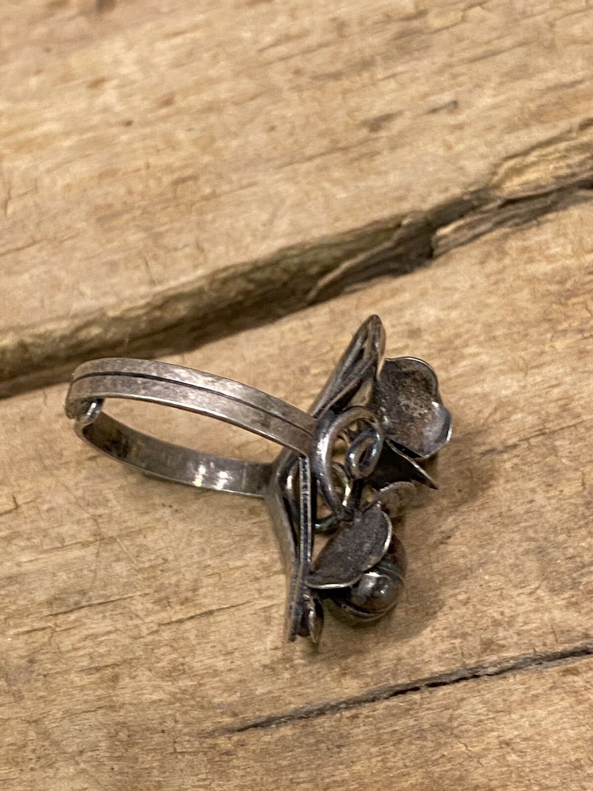 VINTAGE STERLING SILVER ADJUSTABLE SOUTHWESTERN FLOWER RING HALLMARKED