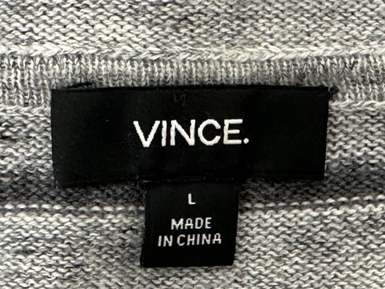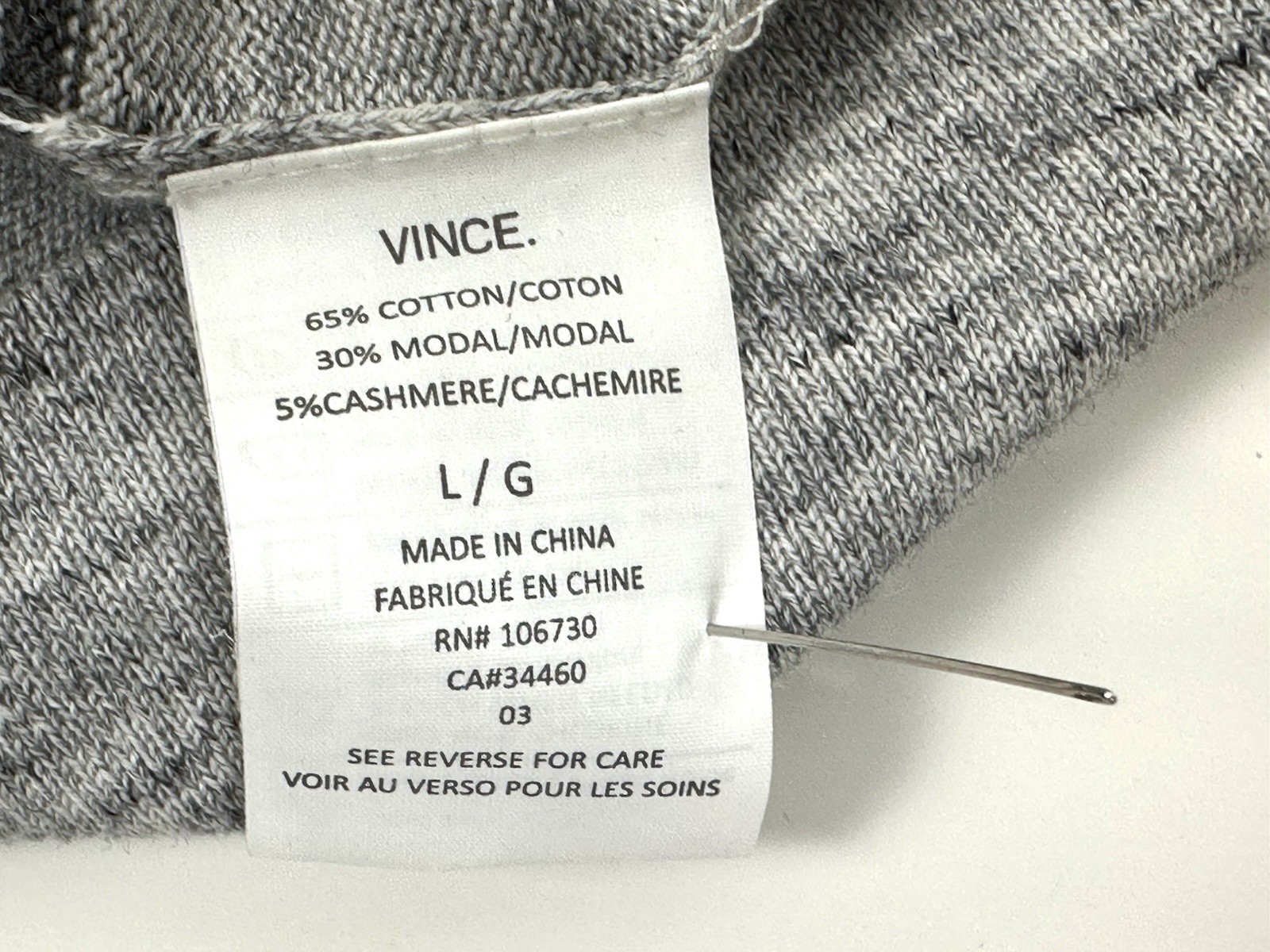 Vince Men's Sz Large Cotton Cashmere Blend Gray Black Striped Sweatshirt Hoodie