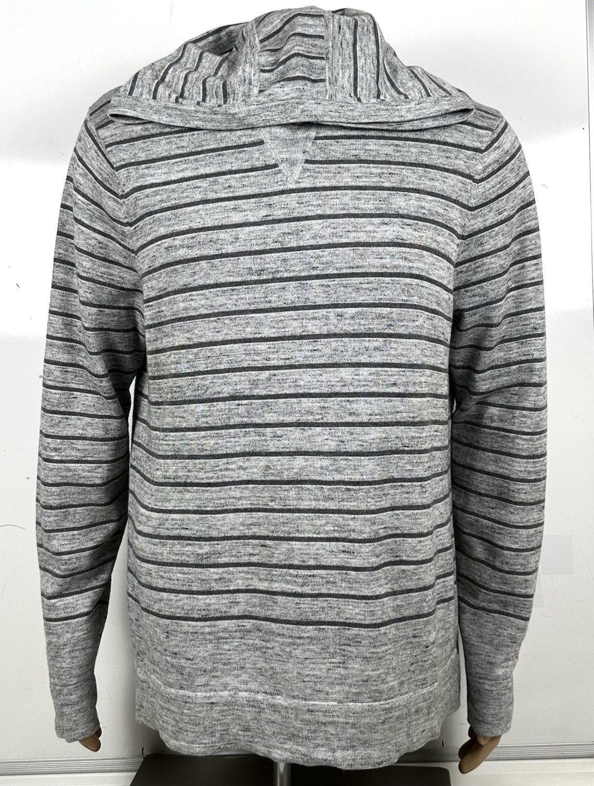 как выглядит Vince Mens Sz Large Cotton Cashmere Blend Gray Black Striped Sweatshirt Hoodie фото
