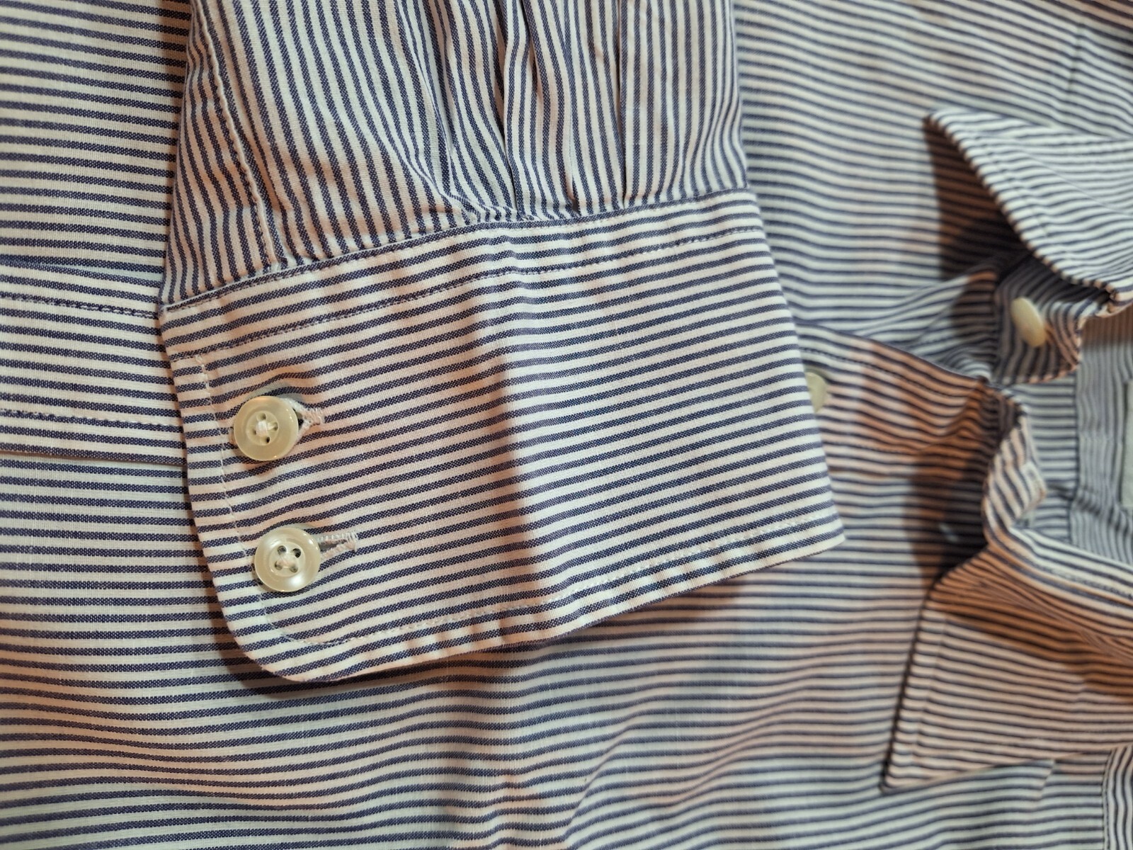 как выглядит T.M. Lewin Shirt Blue Striped 17" - 36" Slim Fit Button Cuff фото