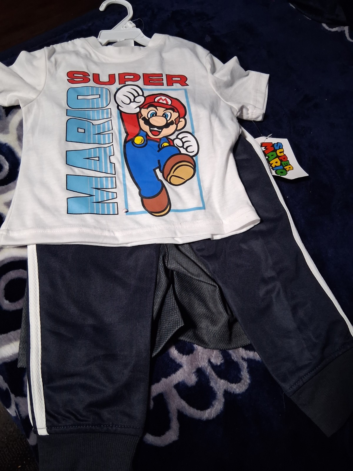 Super Mario Boys Graphic Print T-Shirt Pants 3 Piece Set White Navy Blue Red