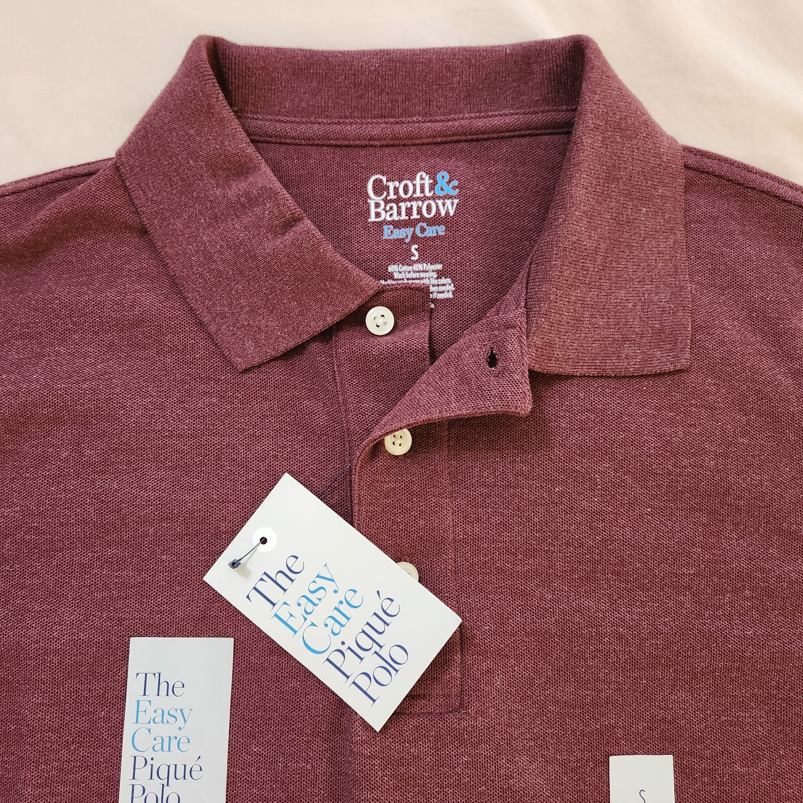 NWT Mens Croft Barrow Polo Shirt SMALL Red Pique Polo Collar S/S Easy Care