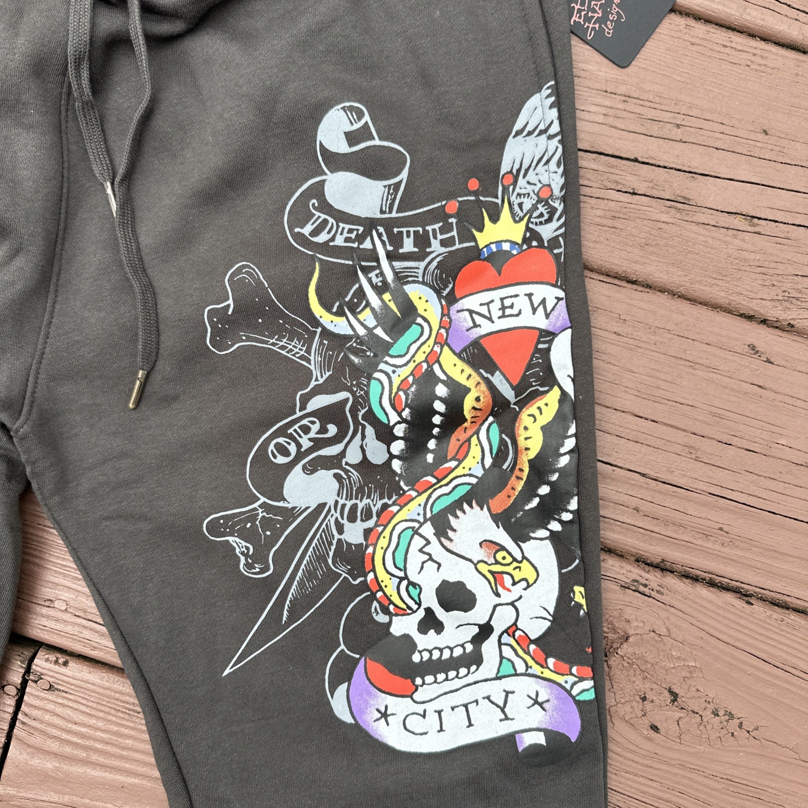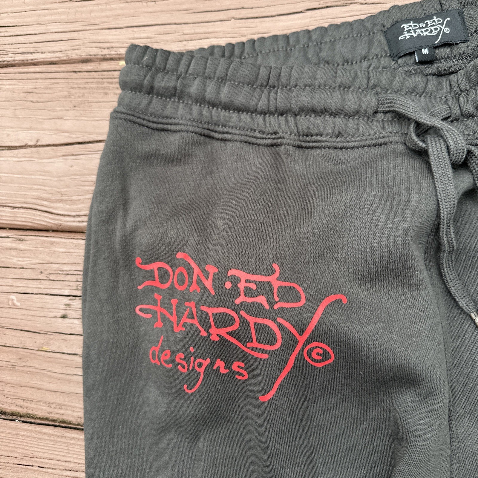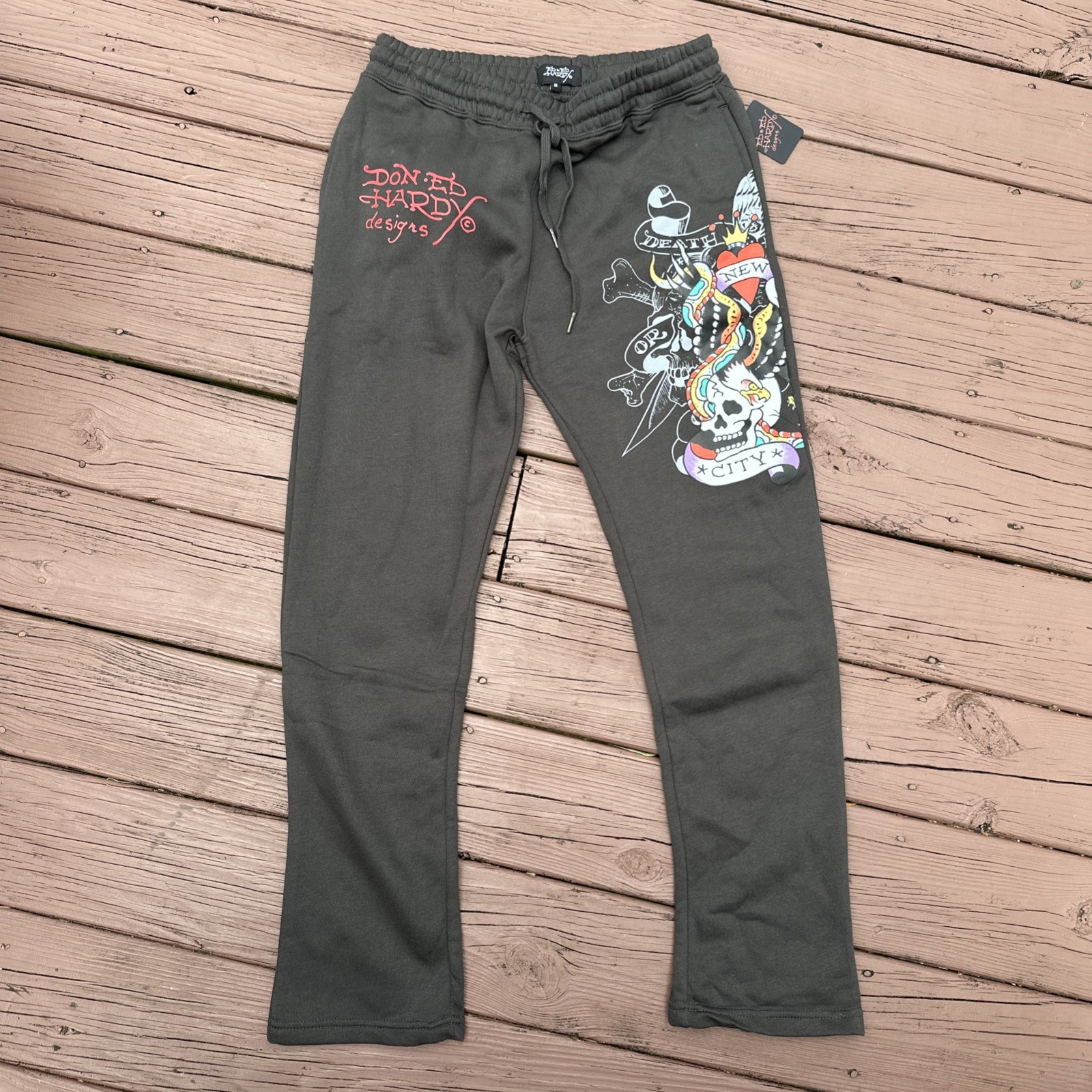 NWT Don Ed Hardy Sweatpants Men s Medium Death Or New City Skull Heart Gray