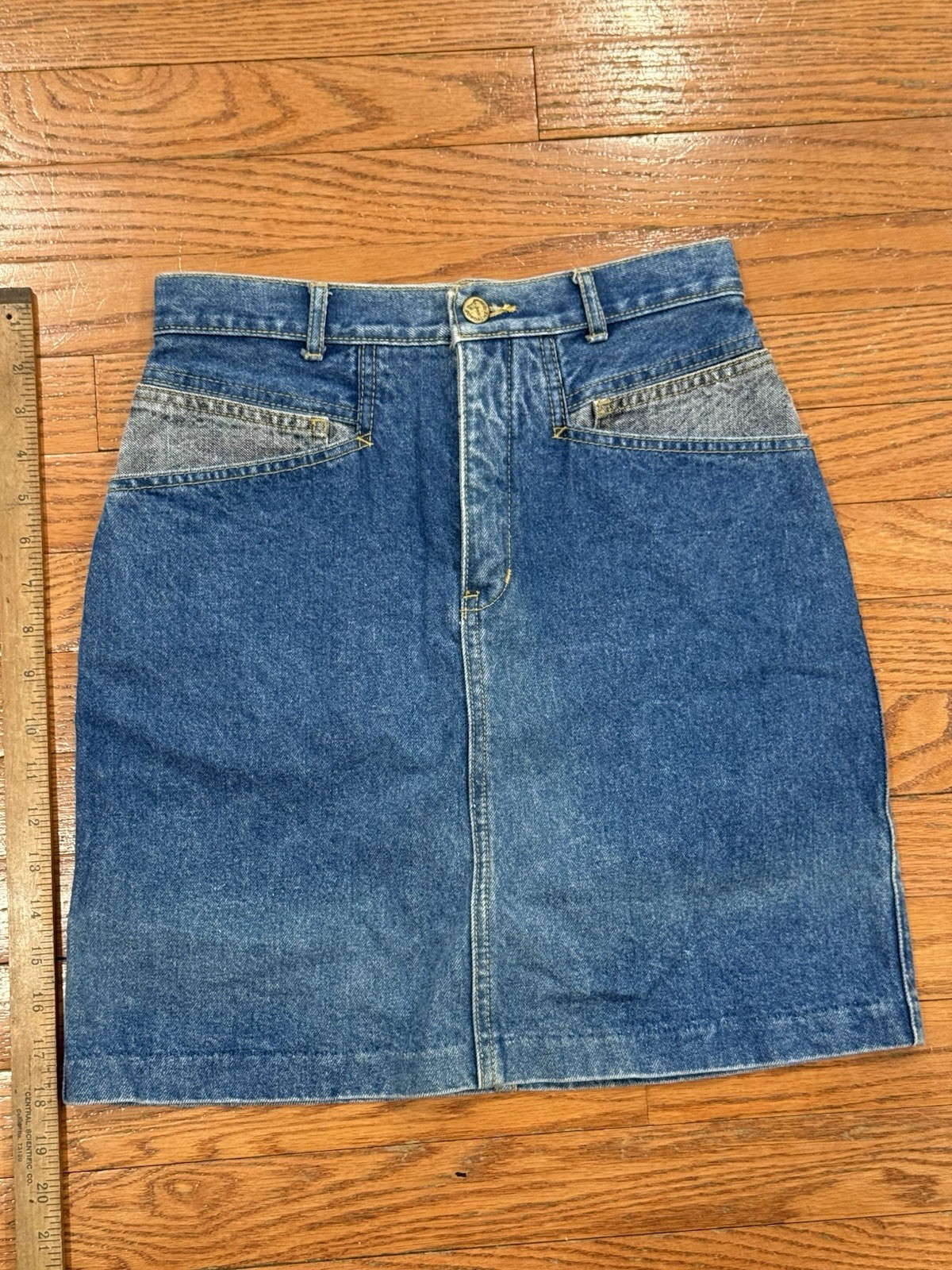 как выглядит Vintage Jordache Denim Skirt Size 12 - 28 Jean High Rise Pencil Made In USA 90s фото