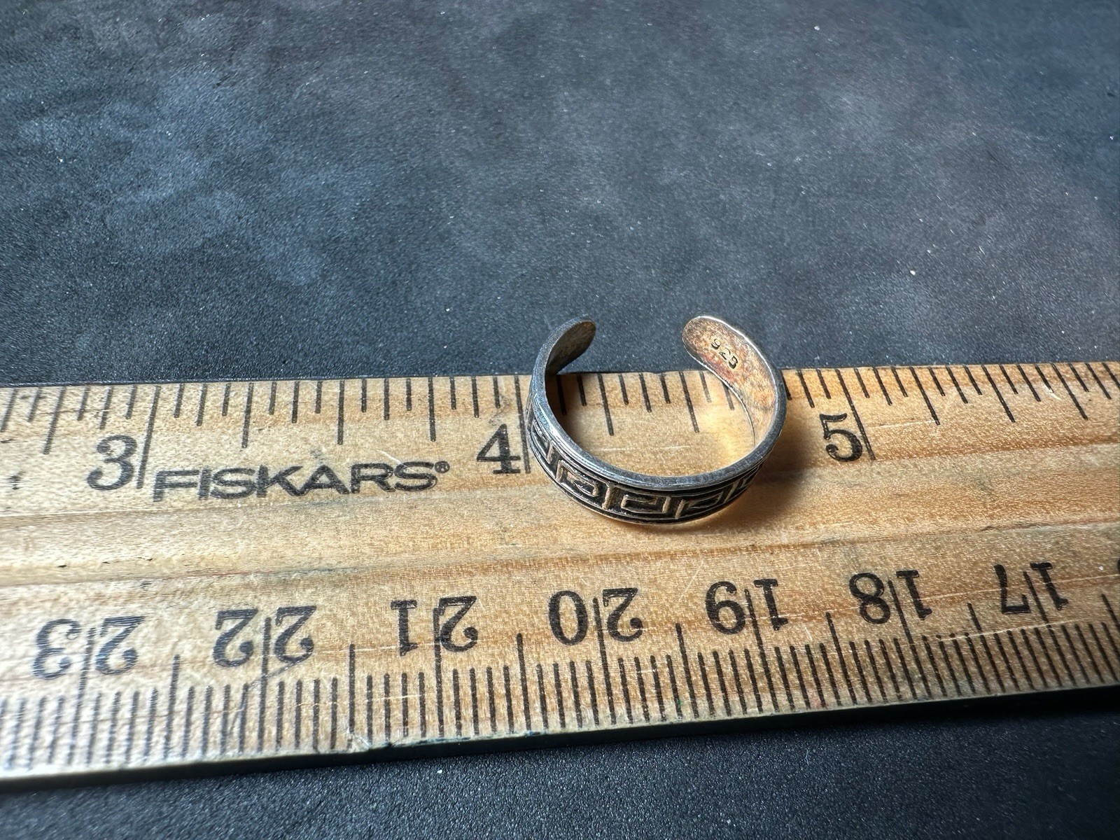 1.47g Vintage Sterling Silver 925 Greek Key Pattern Ring Adjustable M Size 4