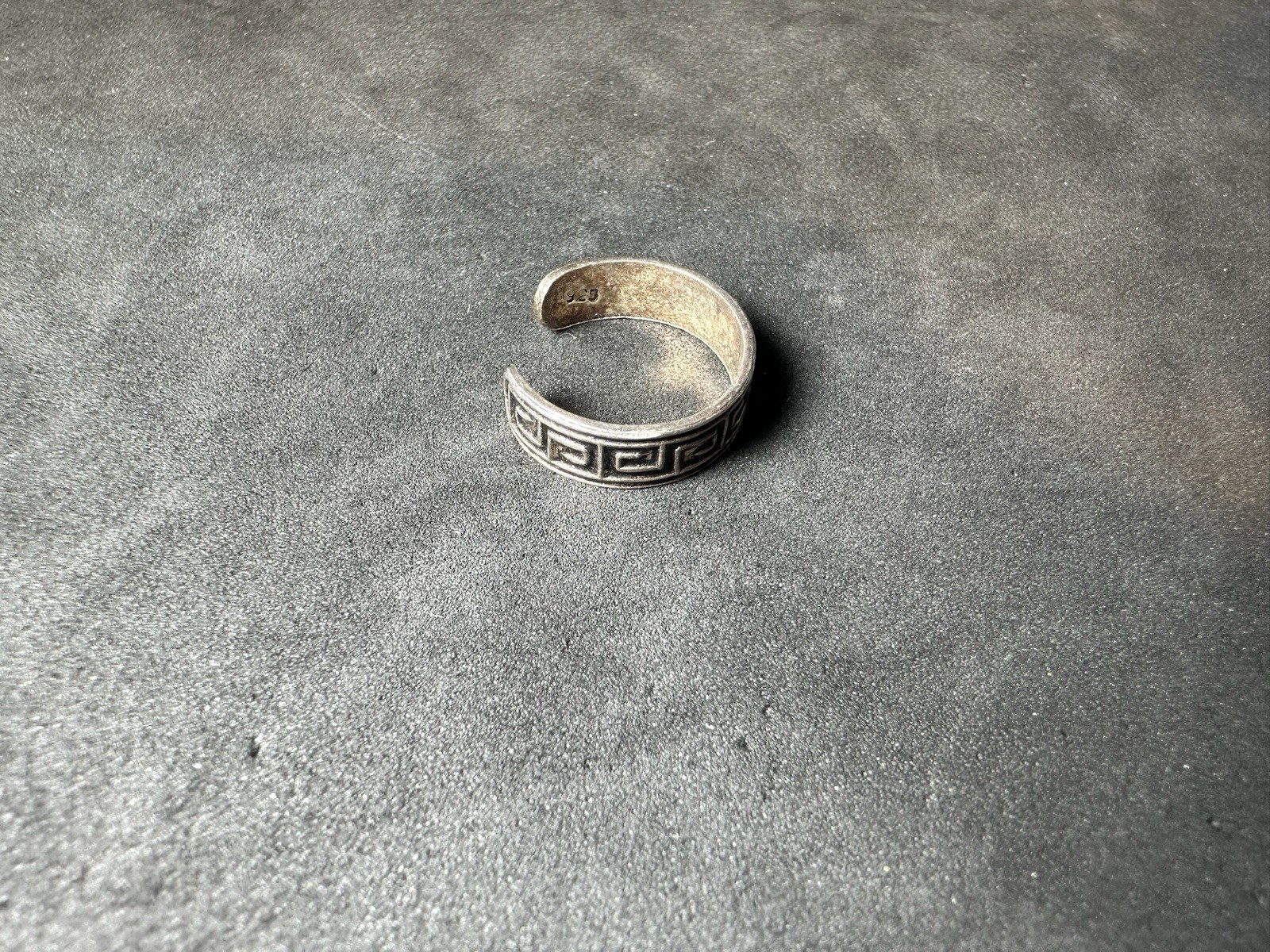 как выглядит 1.47g Vintage Sterling Silver 925 Greek Key Pattern Ring Adjustable M Size 4 фото