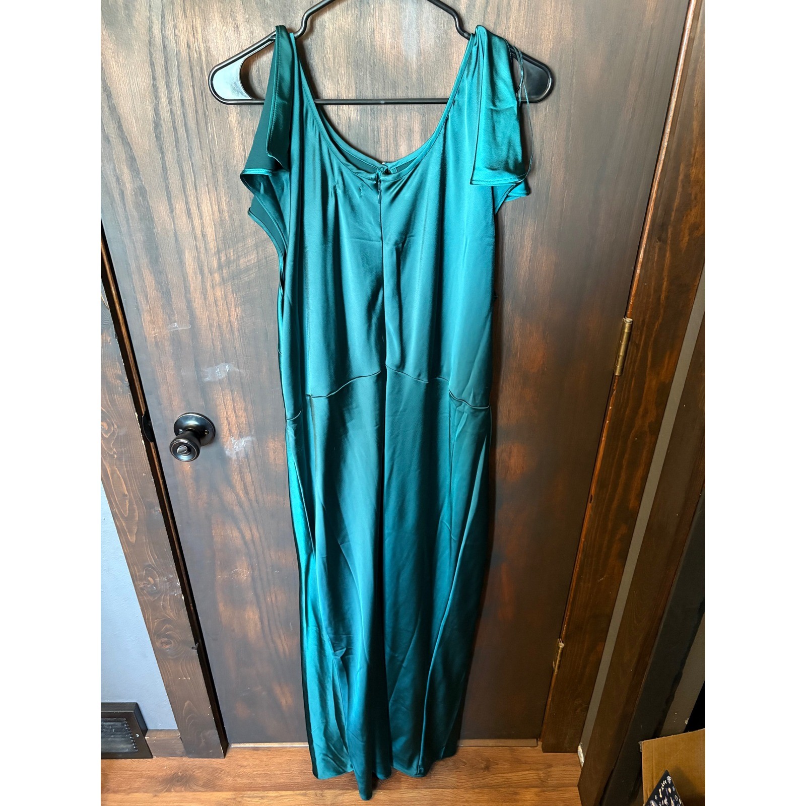как выглядит Green Satin Maxi Dress Flutter Sleeve Keyhole Neckline Evening Gown XXL фото