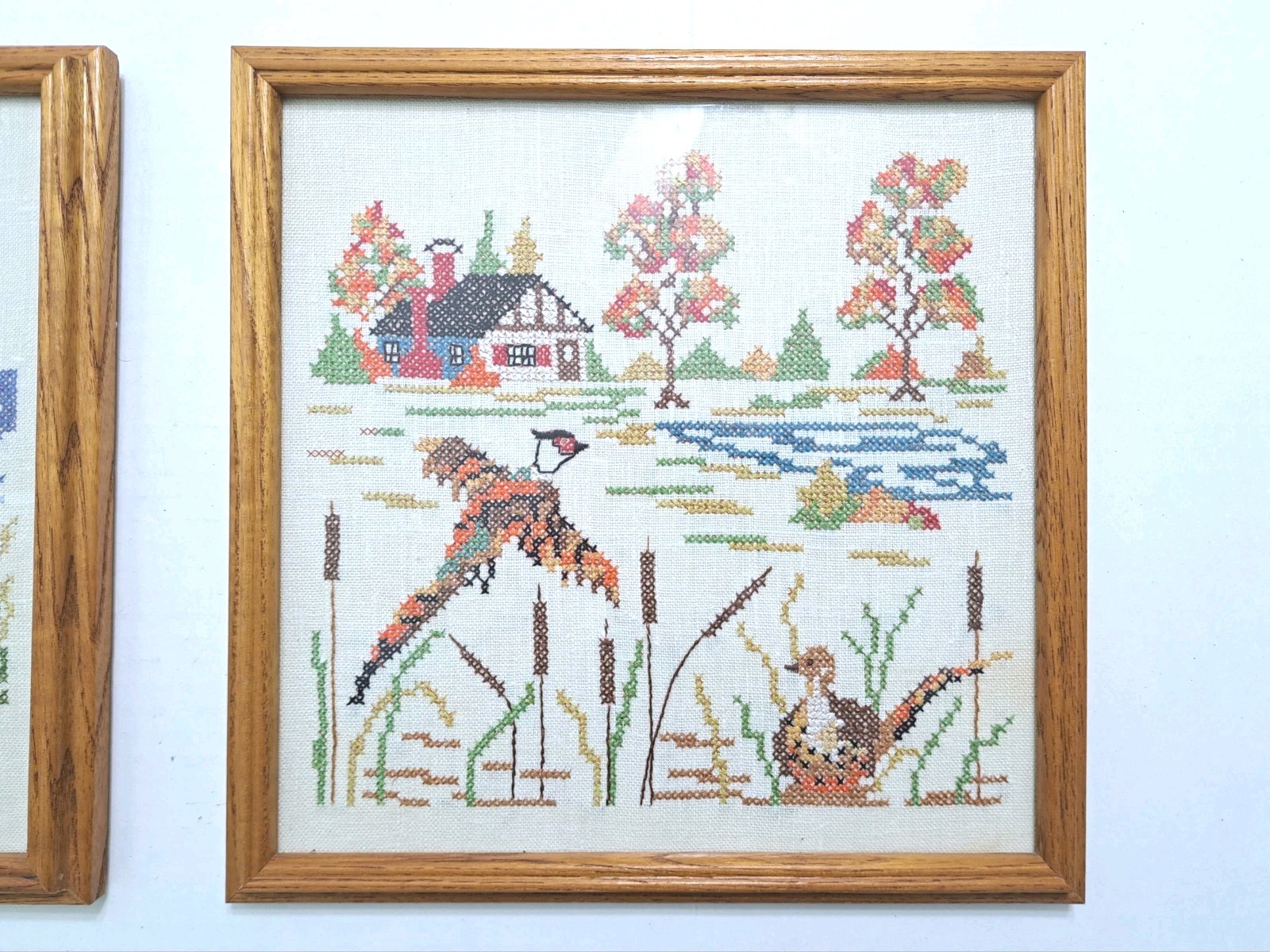Framed Country Seashore Cross Stitch Set Lighthouse Seagull Beach Farm Marsh