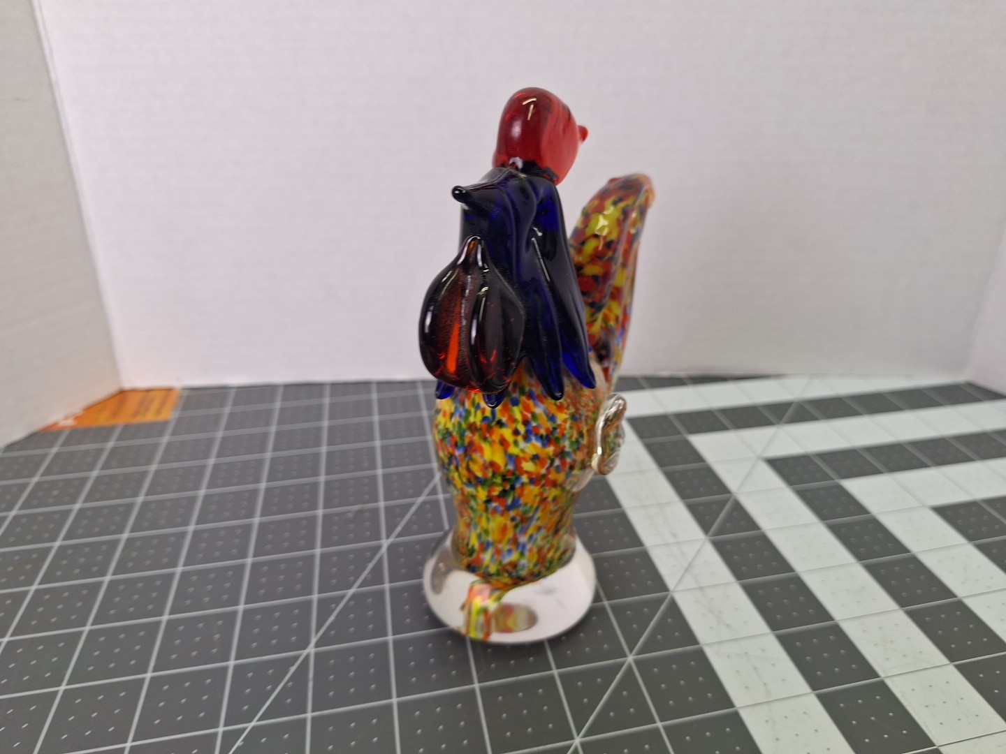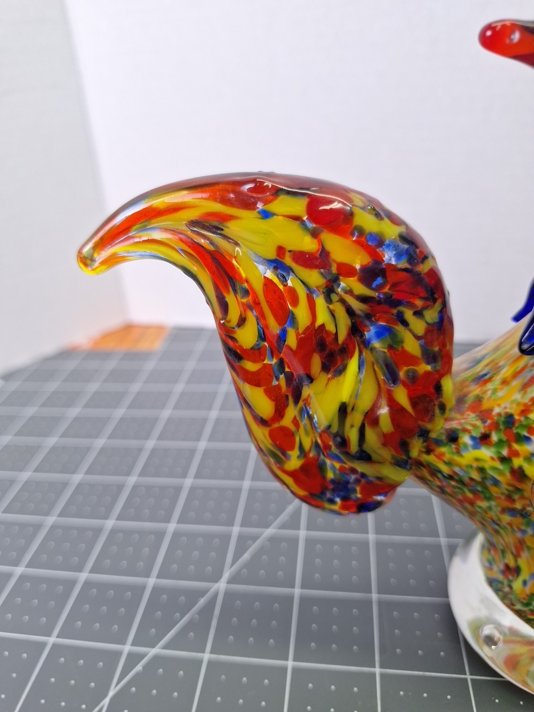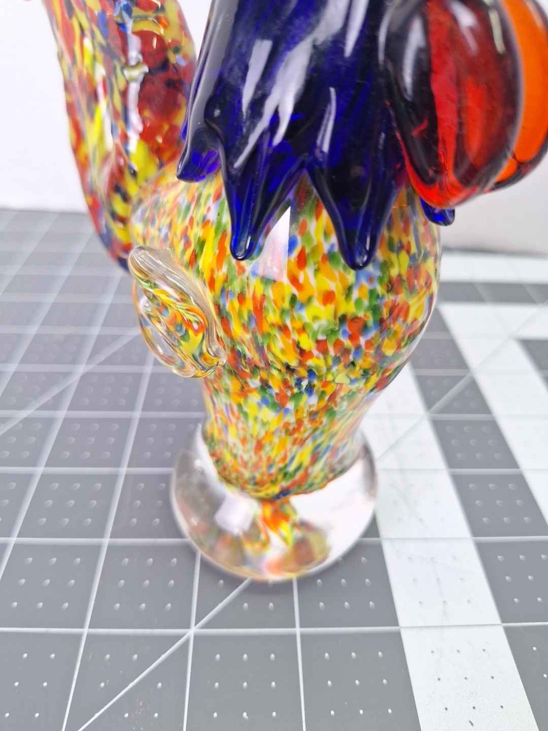 Vintage Hand Blown Murano Style Glass Rooster Beautiful Art Work Blue Red Multi