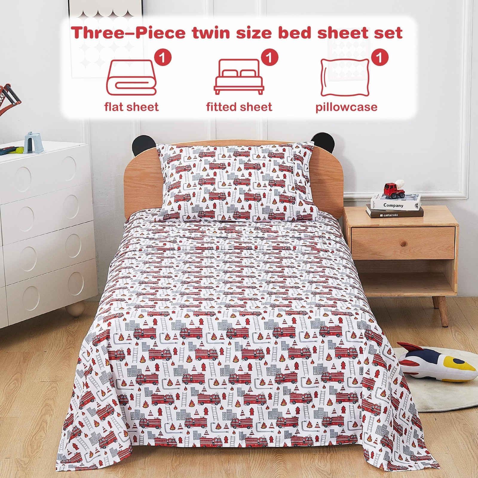 Kids Bed Sheet Set, Boys Twin Size Sheets, Microfiber Kids Fitted Sheet and P...