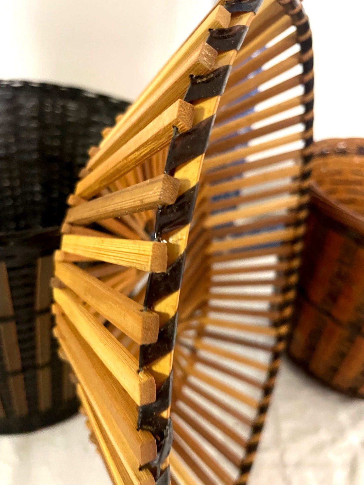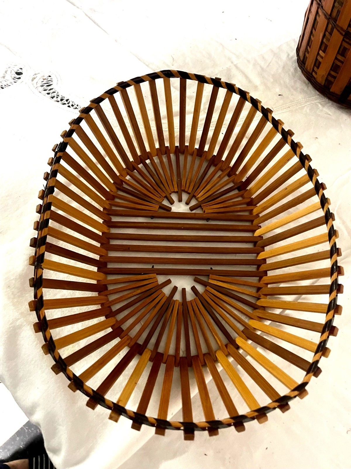 как выглядит Set Of 3 Handwoven Bamboo Storage Baskets With Lid - Multi-Purpose Oval Round фото
