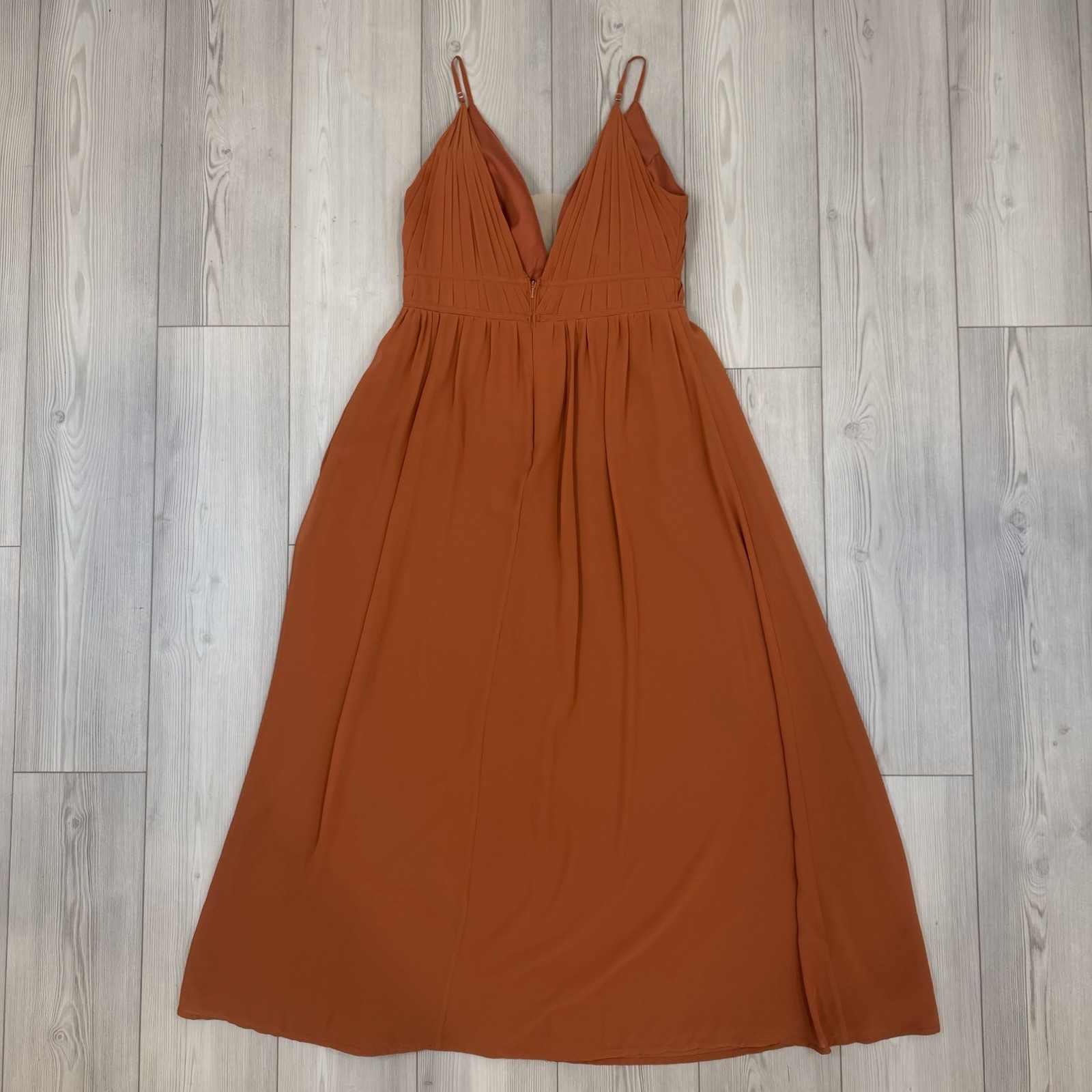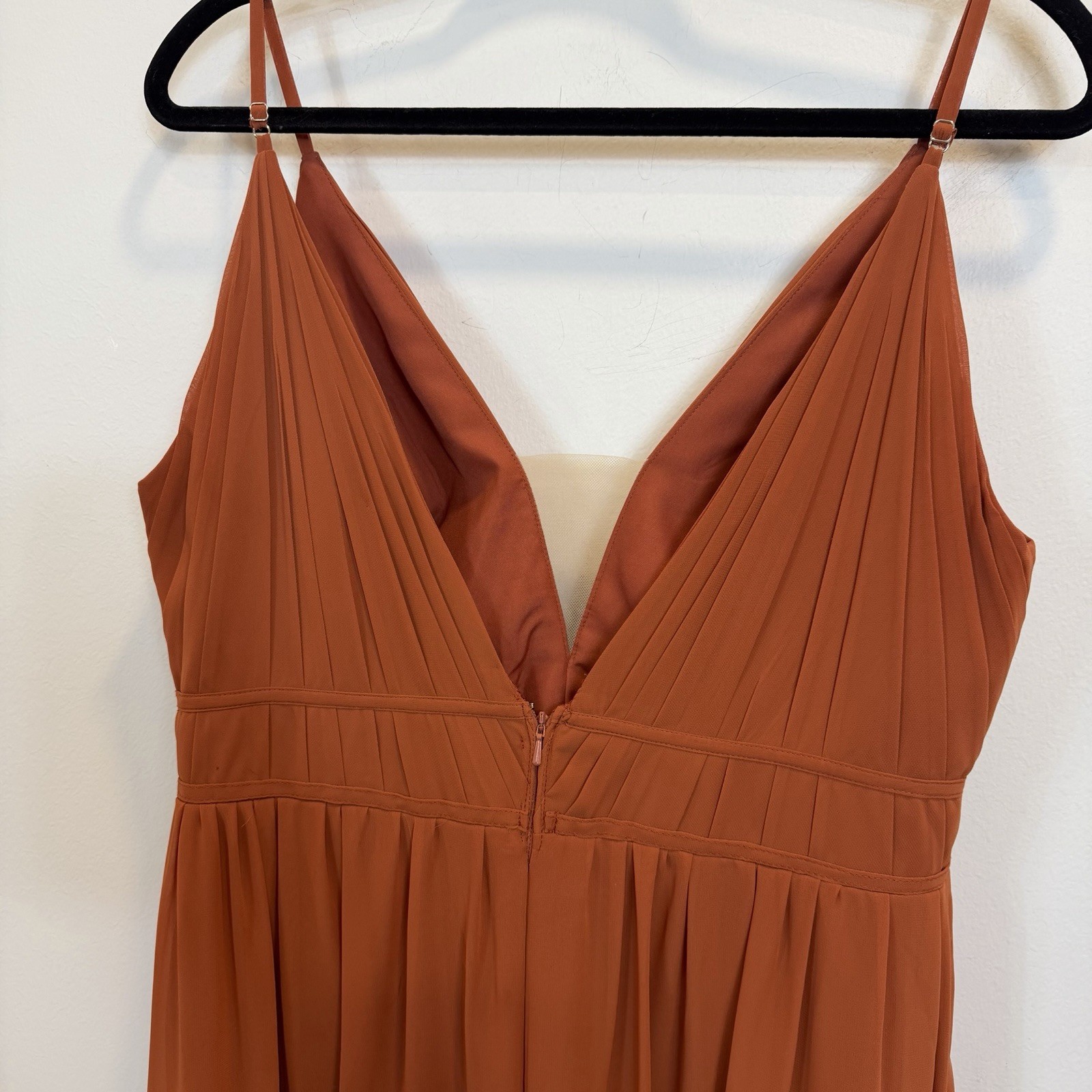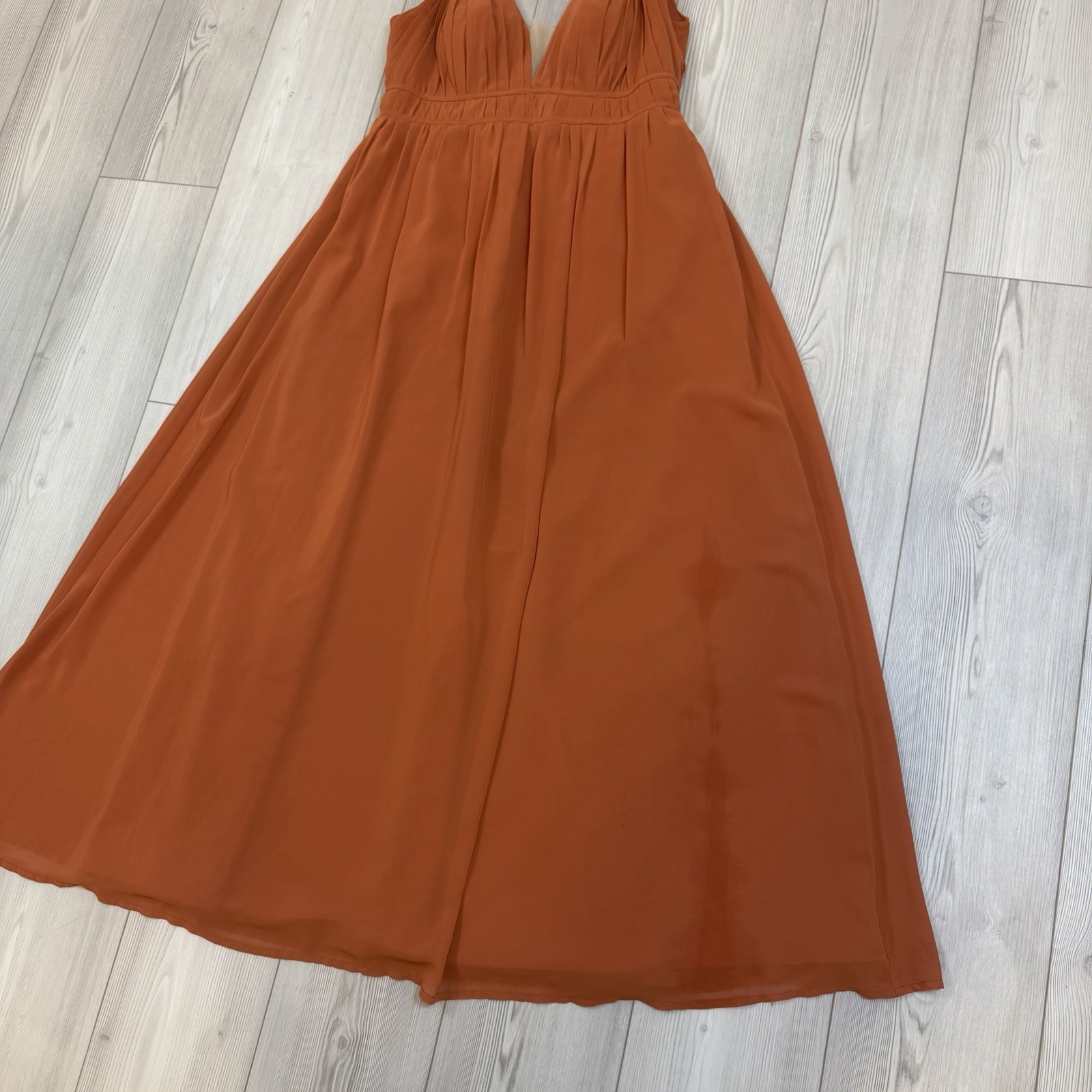 как выглядит Revelry Dress 10 Alma Chiffon Maxi Gown Formal Rust Orange Wedding Bridesmaid фото