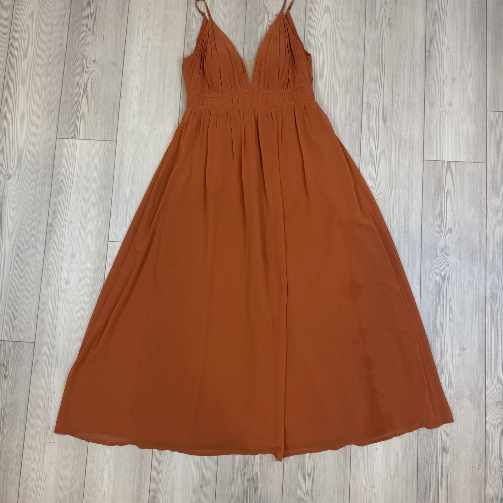 Revelry Dress 10 Alma Chiffon Maxi Gown Formal Rust Orange Wedding Bridesmaid
