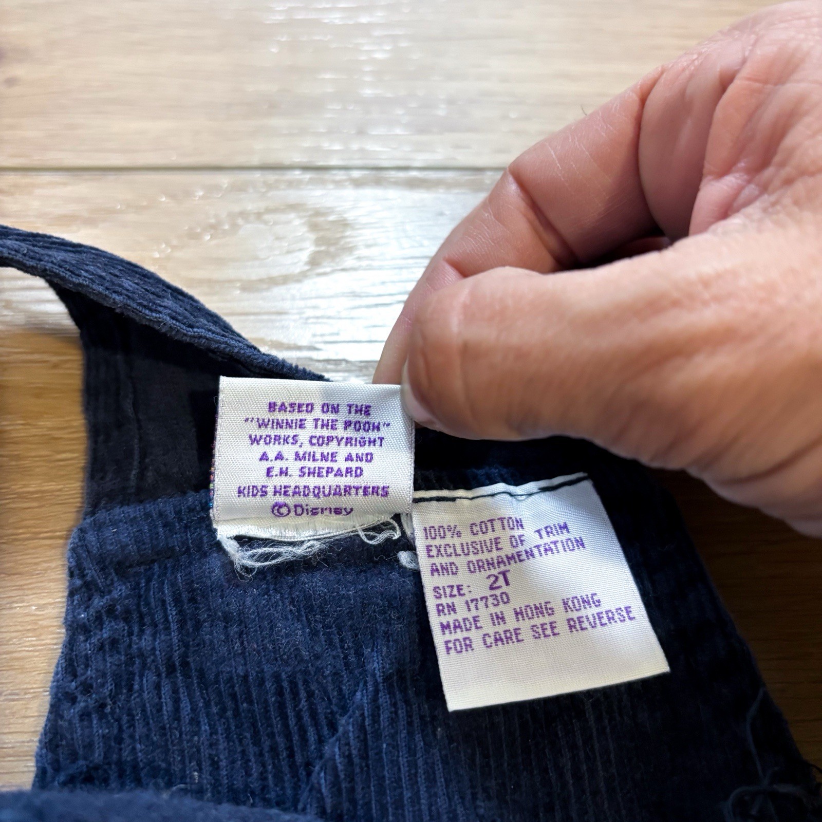 как выглядит Vintage Winnie The Pooh Overalls 90s Disney Kids Youth Sz 2T Corduroy Blue RARE фото