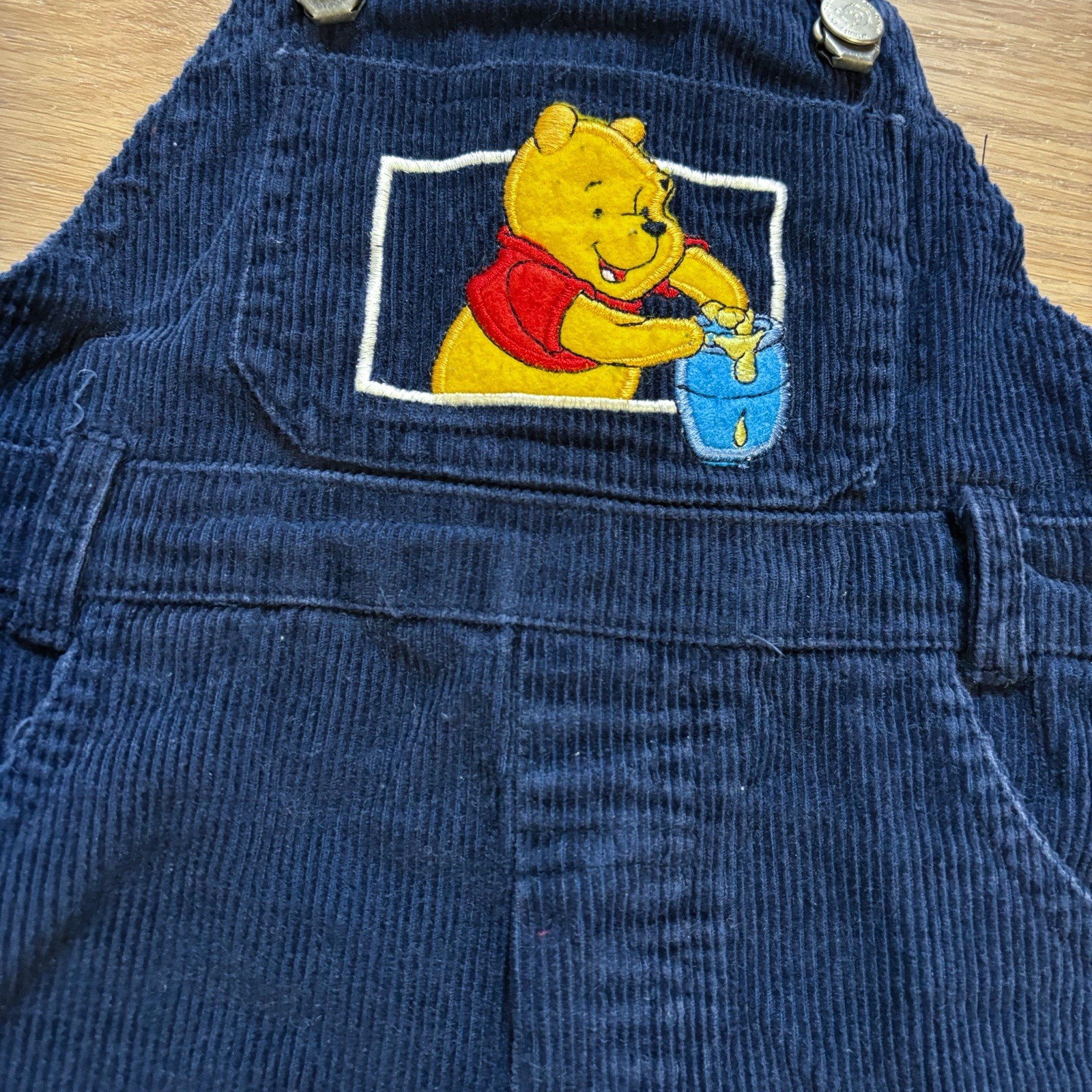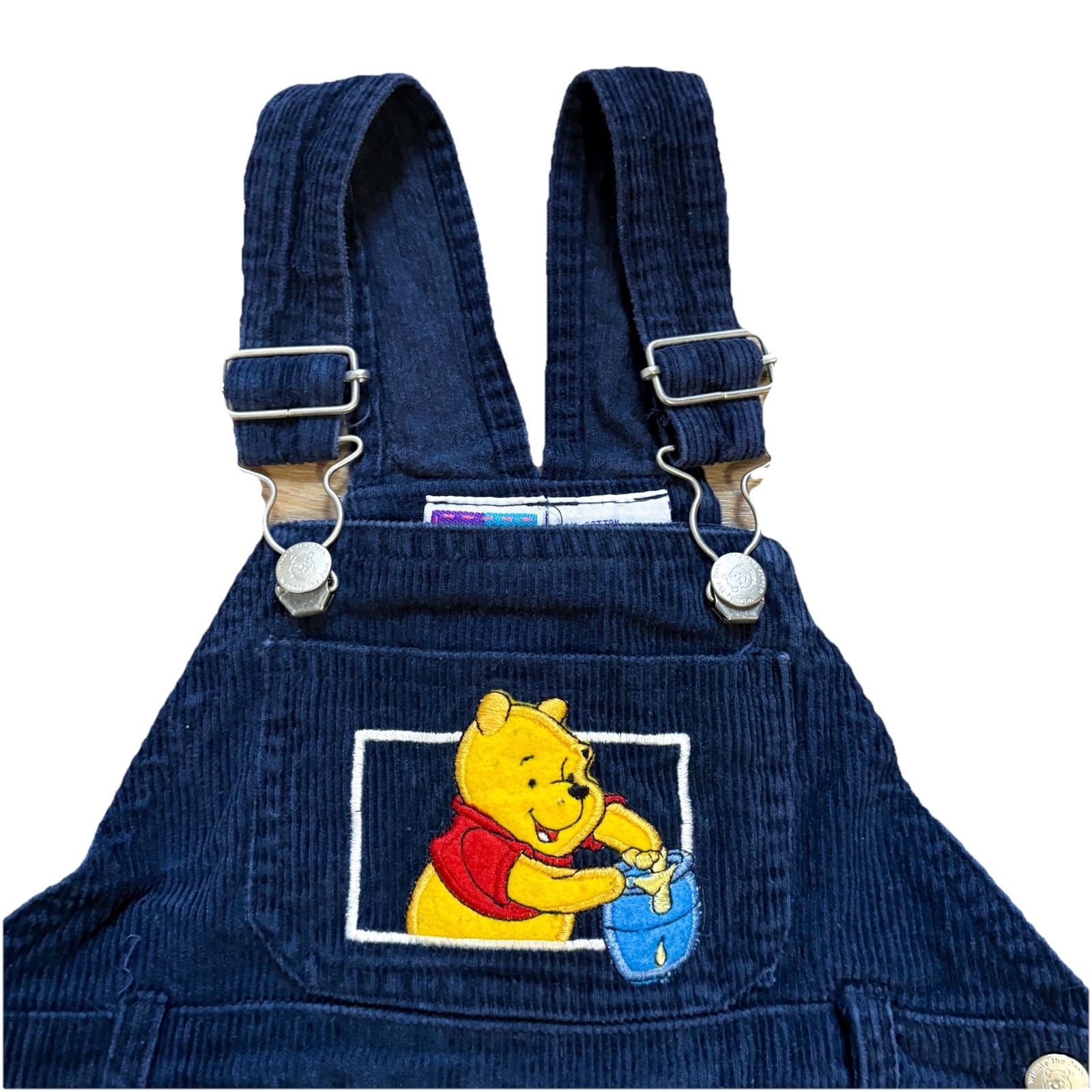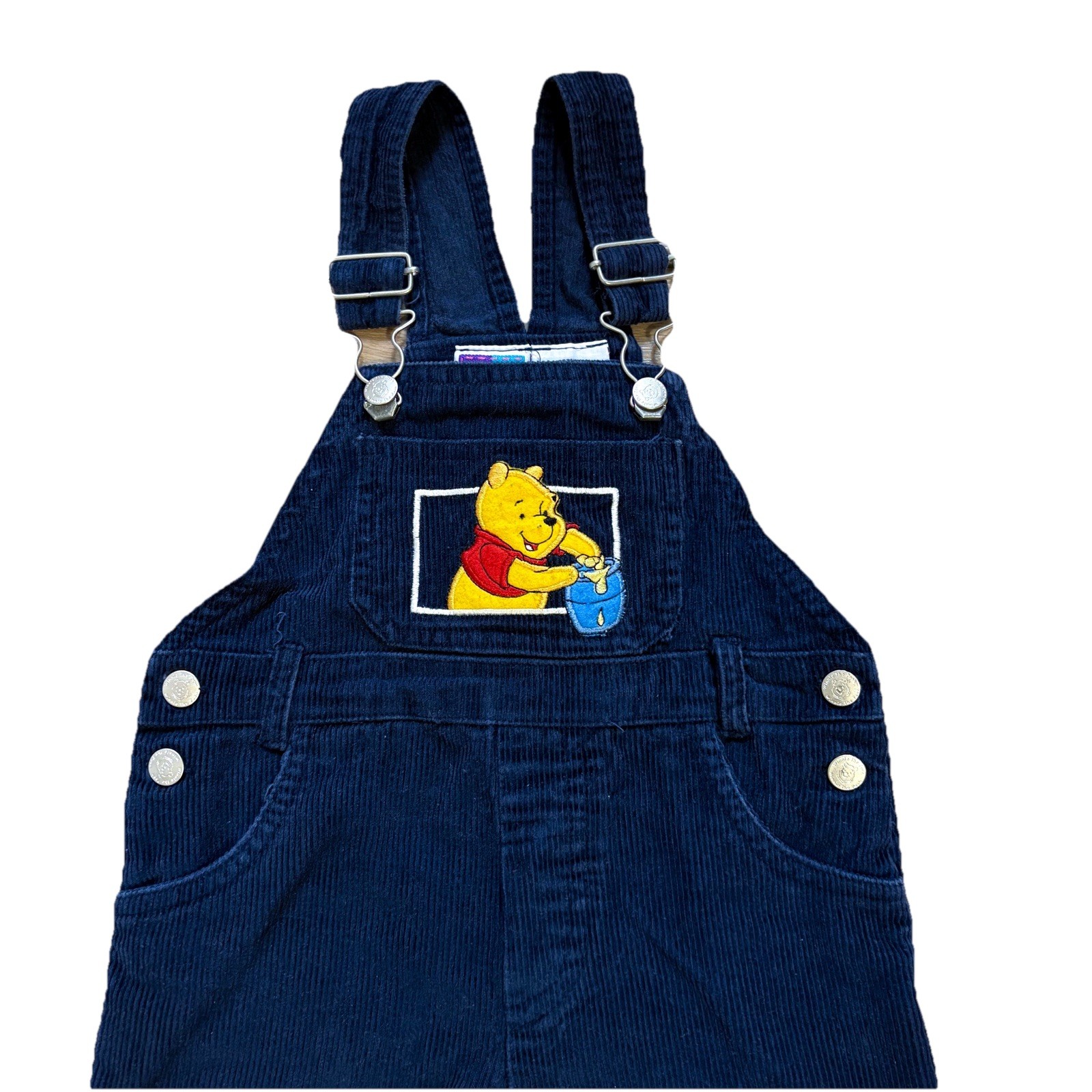 Vintage Winnie The Pooh Overalls 90s Disney Kids Youth Sz 2T Corduroy Blue RARE