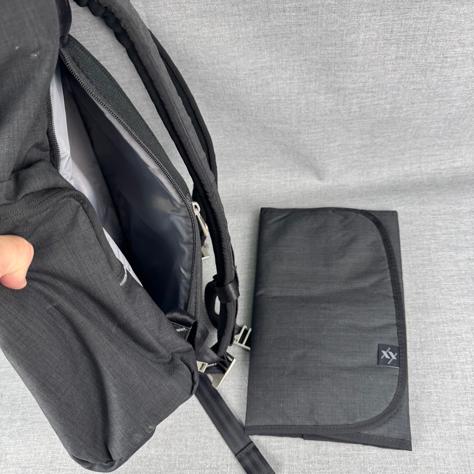 как выглядит JuJuBe XY Collection Hatch Backpack Diaper Bag Gray Multi Pocket w/Changing Pad фото