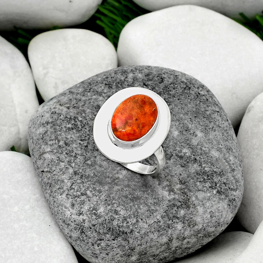 Natural Red Sponge Coral 925 Sterling Silver Ring s.8 Jewelry R-1082