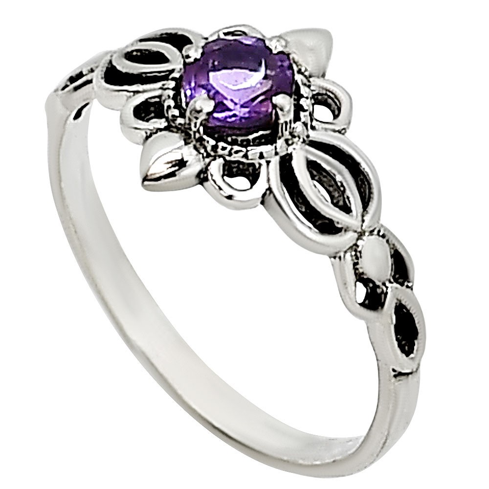 как выглядит Natural Amethyst - Brazil 925 Sterling Silver Ring s.6 Jewelry R-1172 фото