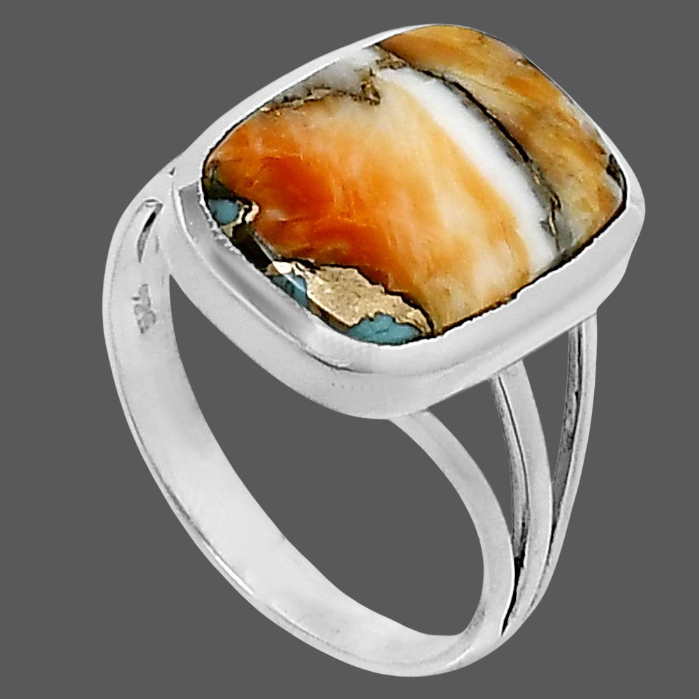 как выглядит Premium Spiny Oyster Turquoise 925 Sterling Silver Ring s.9 Jewelry R-1006 фото