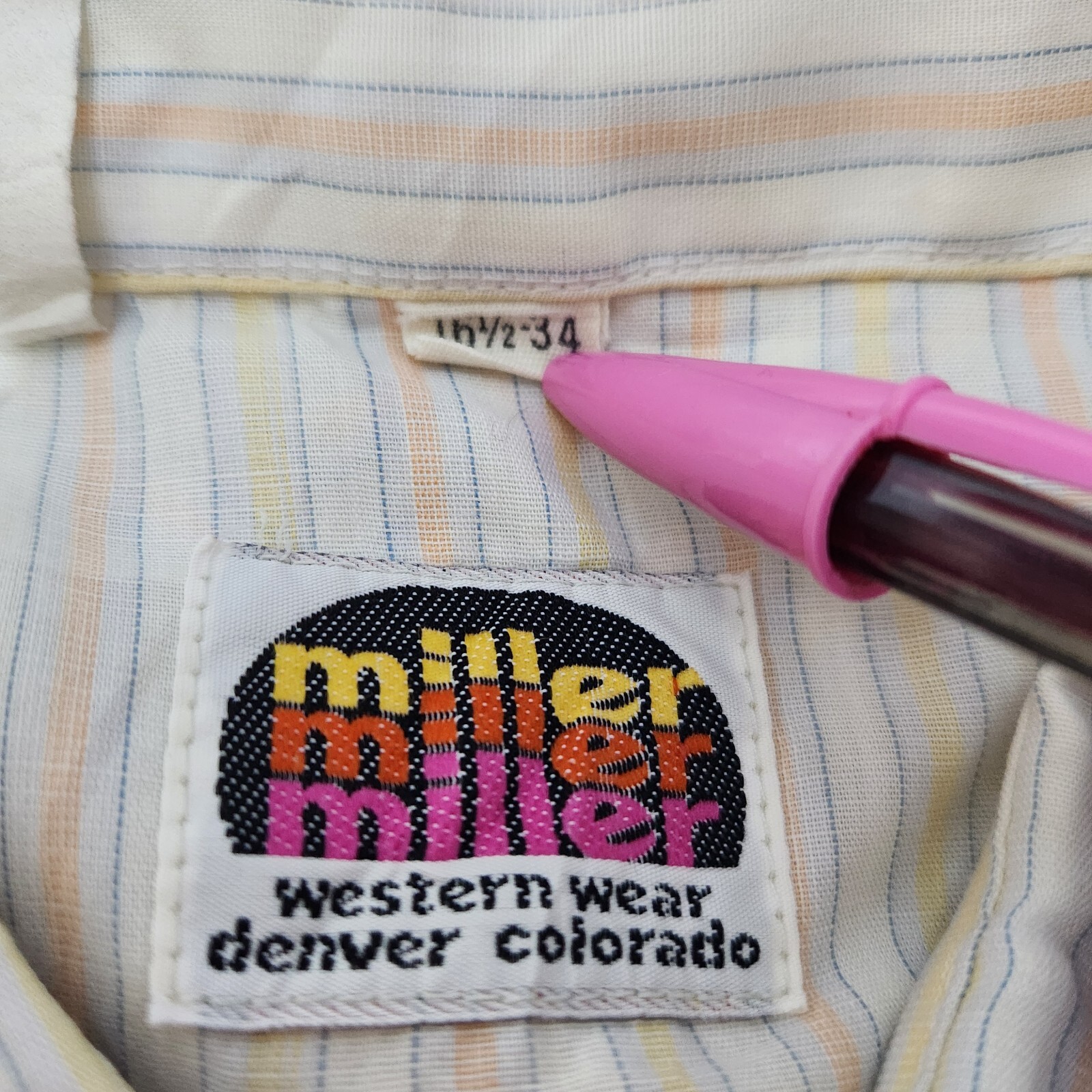 Vtg Miller Western Shirt Mens 16.5-34 Beige Pearl Snap Cowboy Rodeo Rancher USA