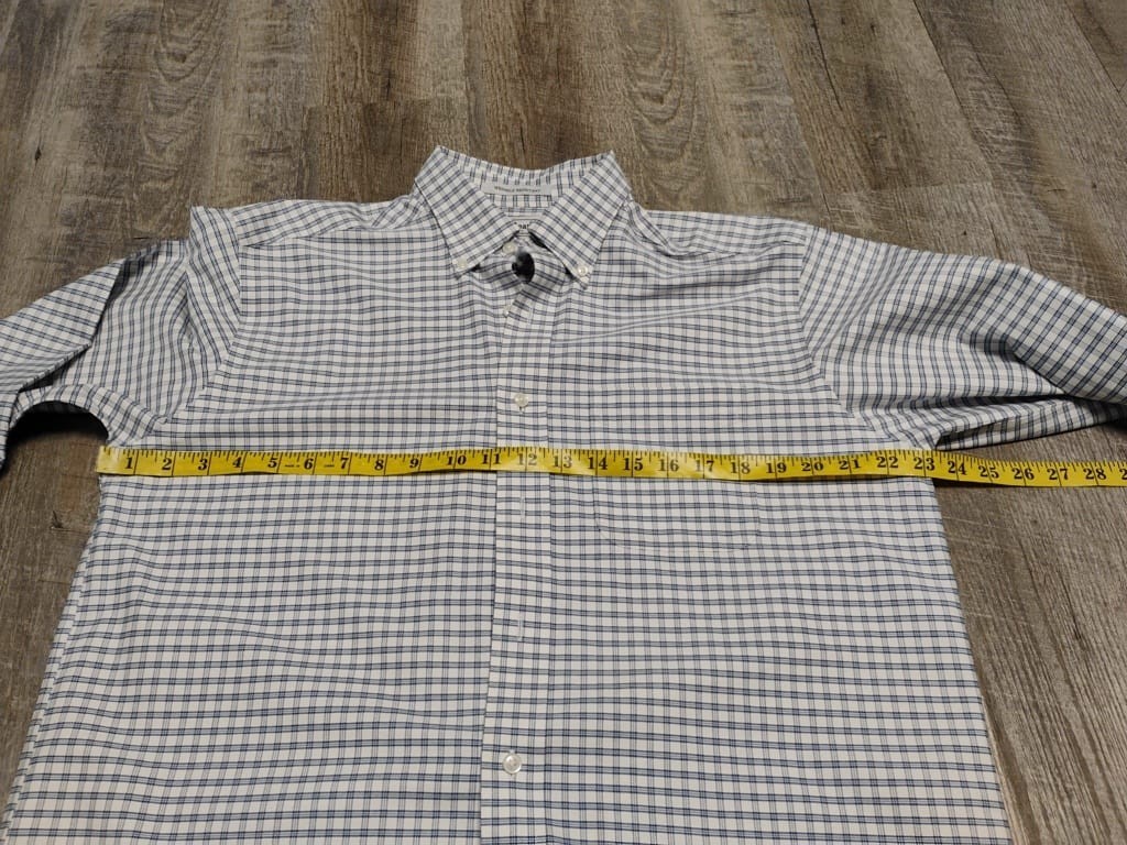 как выглядит L.L. Bean wrinkle free Shirt 15.5-33 Plaid Blue Cotton Made in Malaysia фото