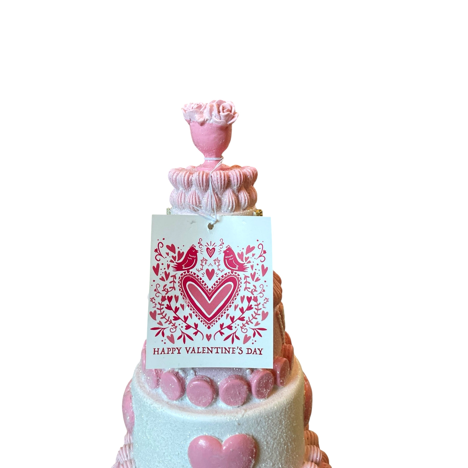 Sweet Treats 15in Pink White Hearts Faux Cake on Stand Valentine Decor NEW