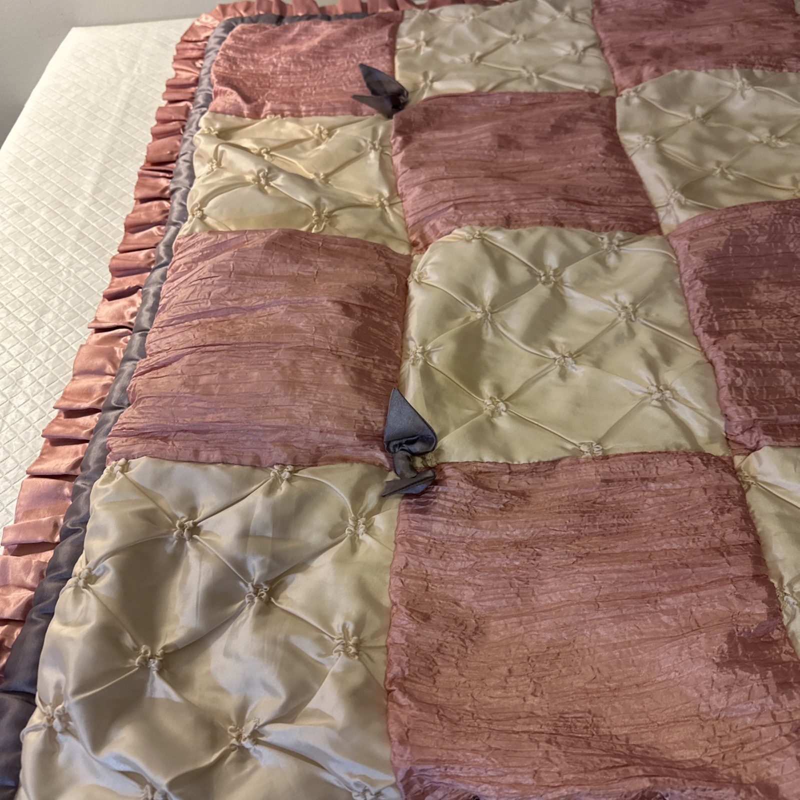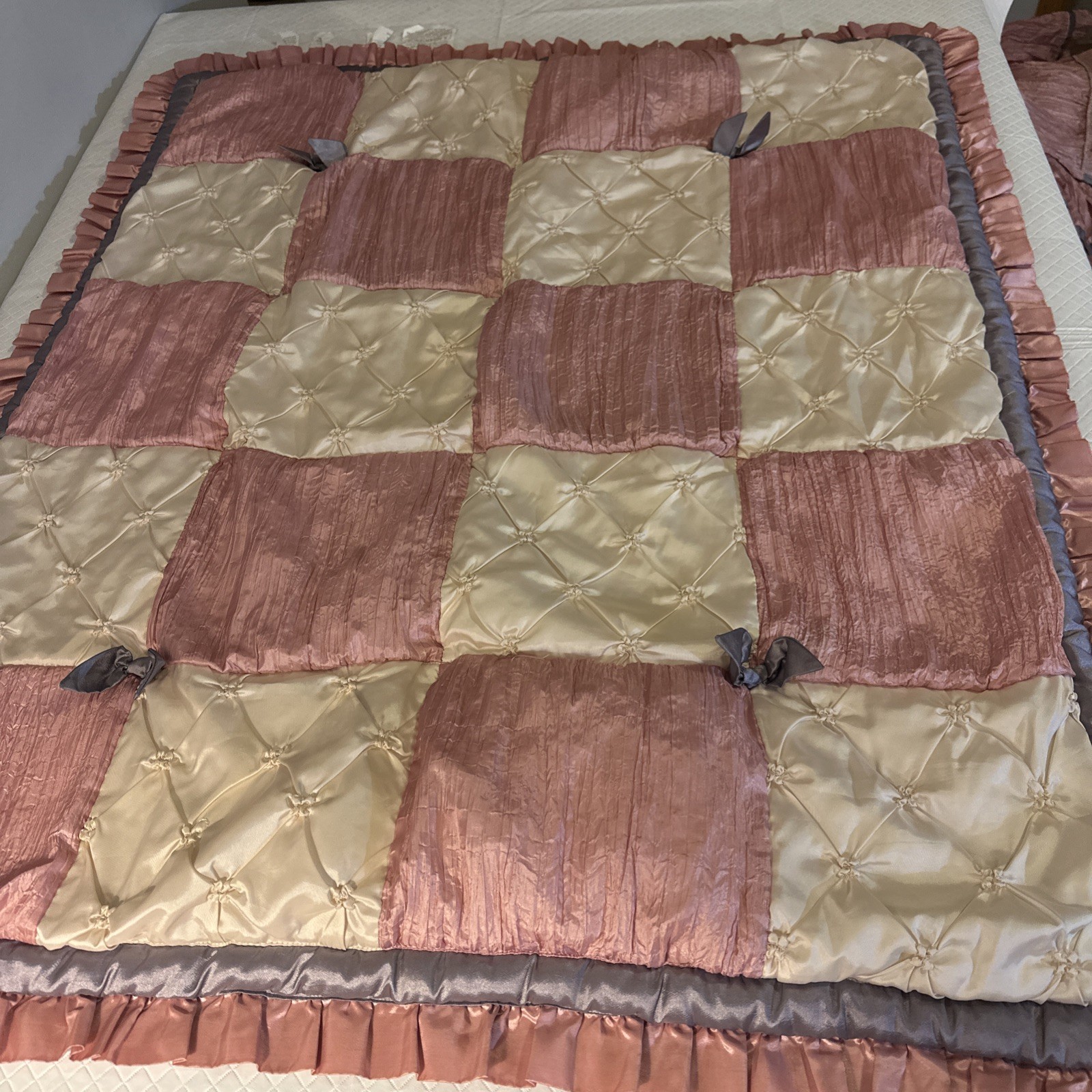 Peanut Shell Bella 2 Piece Crib Skirt Quilt Baby Girl Nursery Bedding EUC Pink
