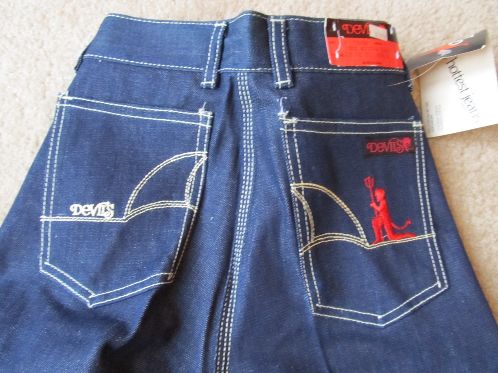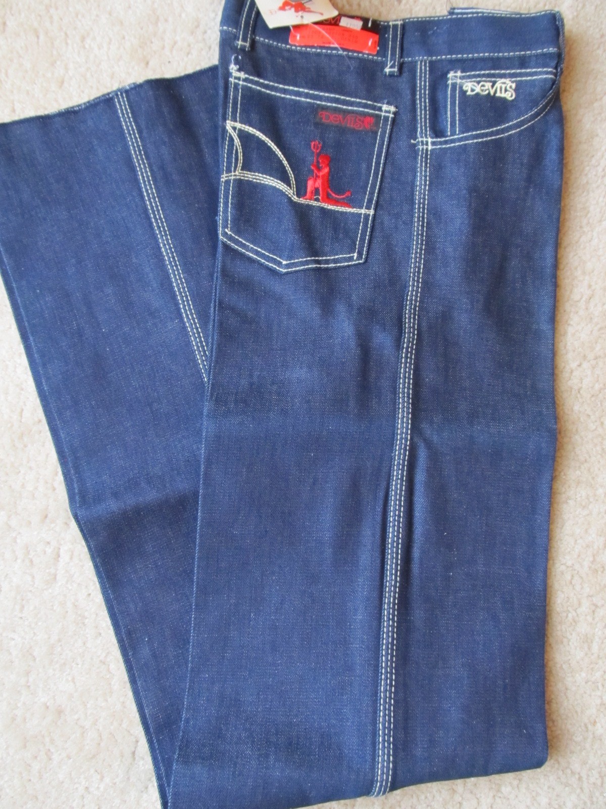 Vintage 70s DEVIL brand Flare denim jeans size 28 deadstock