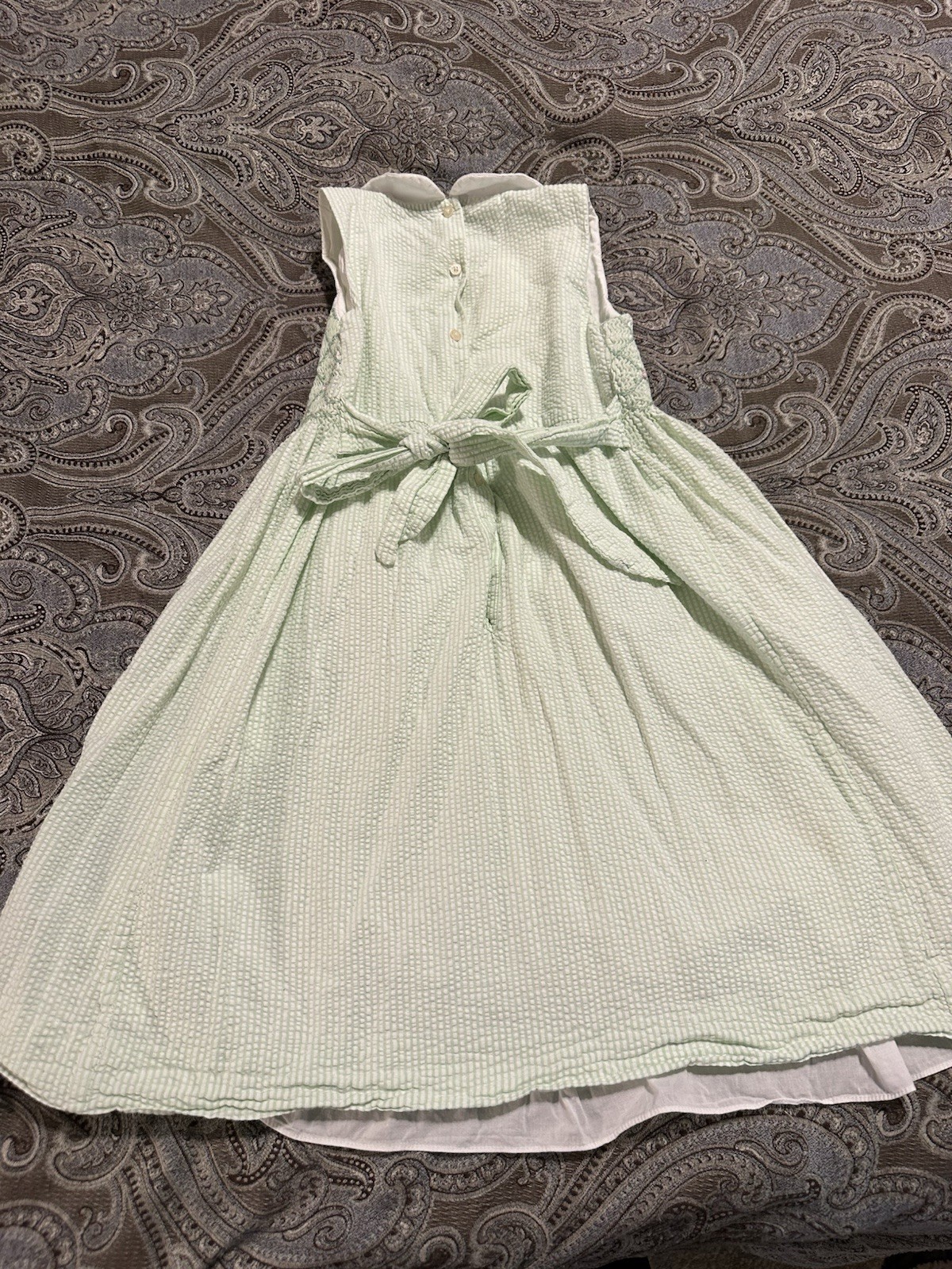 как выглядит Ralph Lauren Girls Seersucker green White Fit Flare Cotton Dress sz 6 floral фото