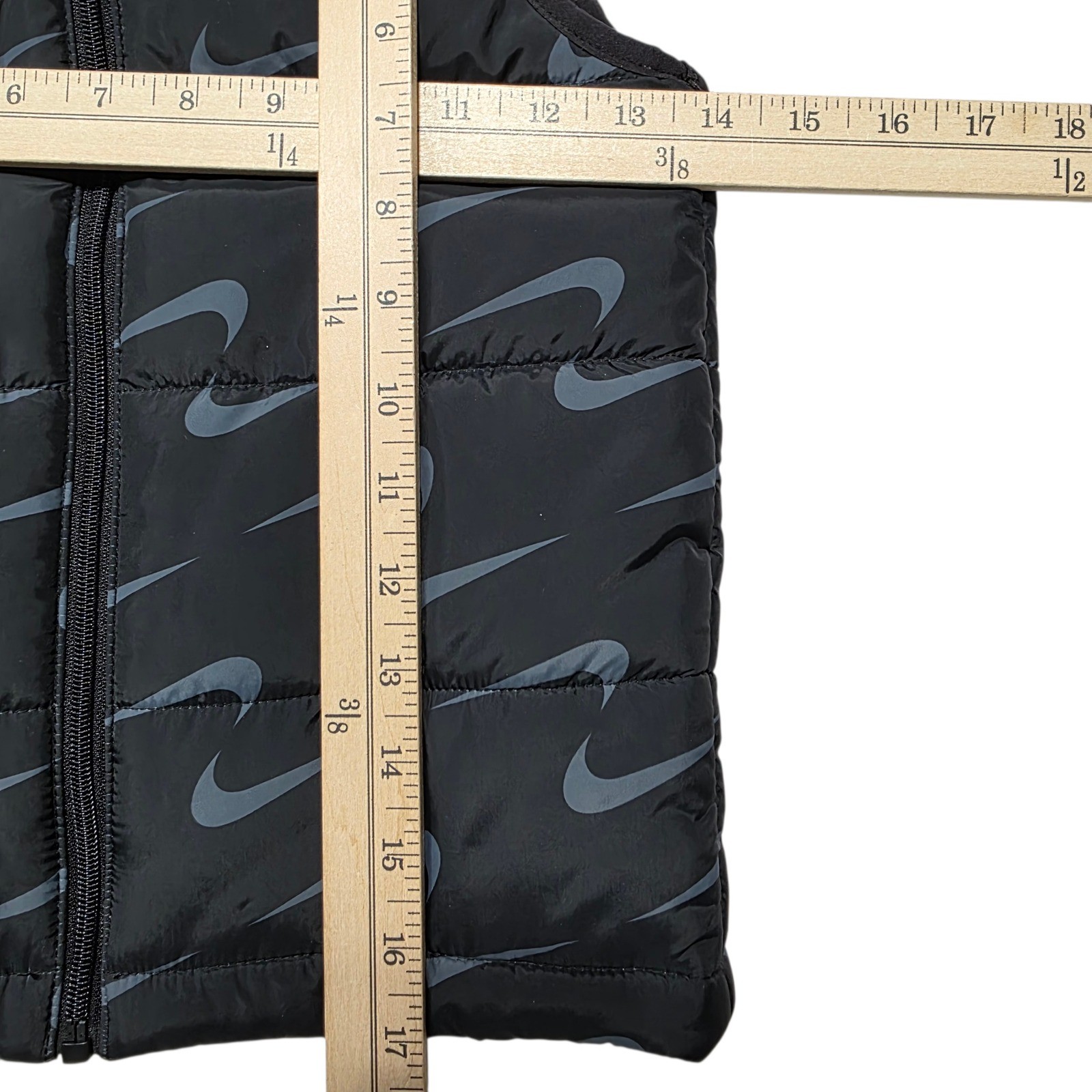 как выглядит Nike Boys Puffer Vest Black Grey Swoosh Print Full Zip Size S 4-5YRS M245-023 фото