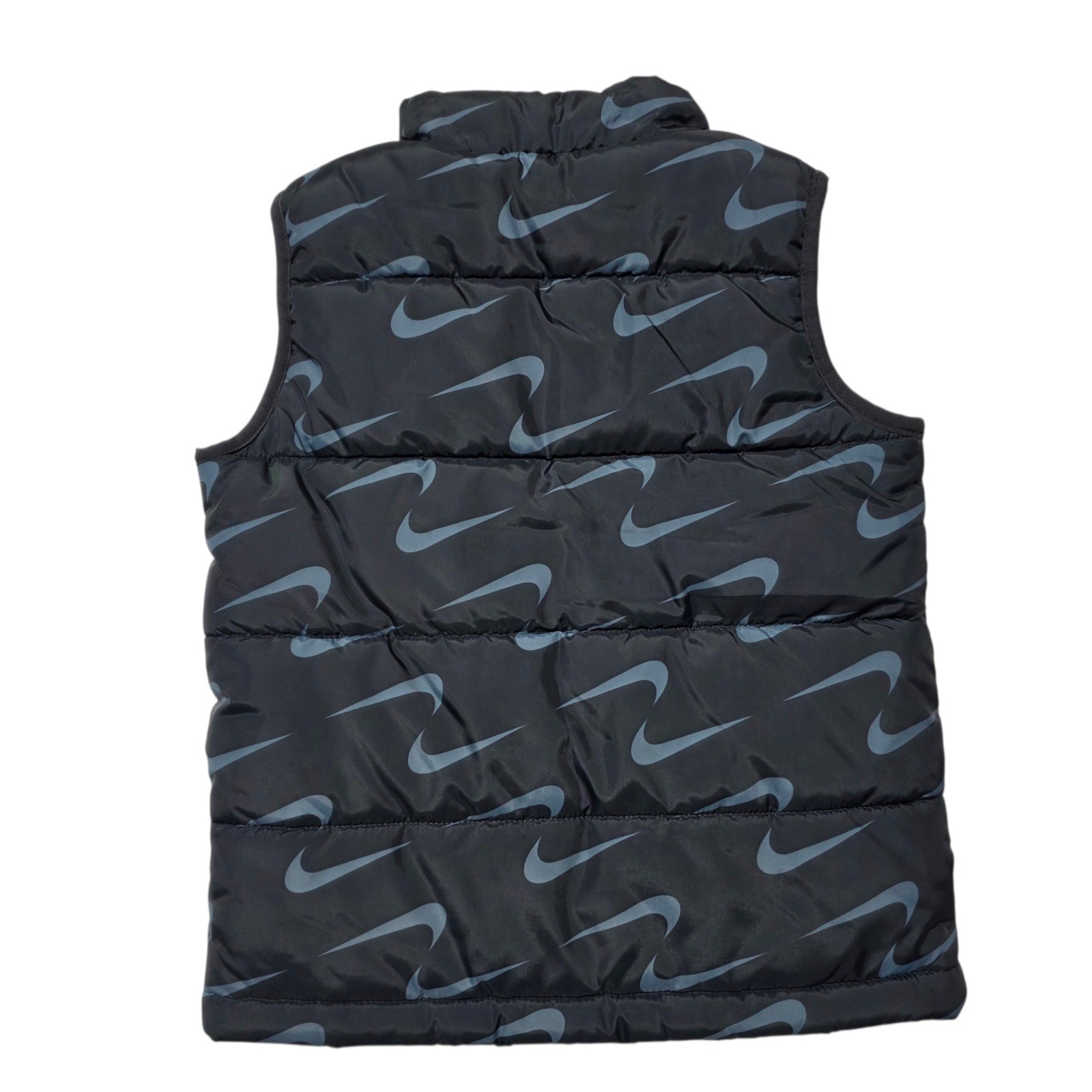 Nike Boys Puffer Vest Black Grey Swoosh Print Full Zip Size S 4-5YRS M245-023