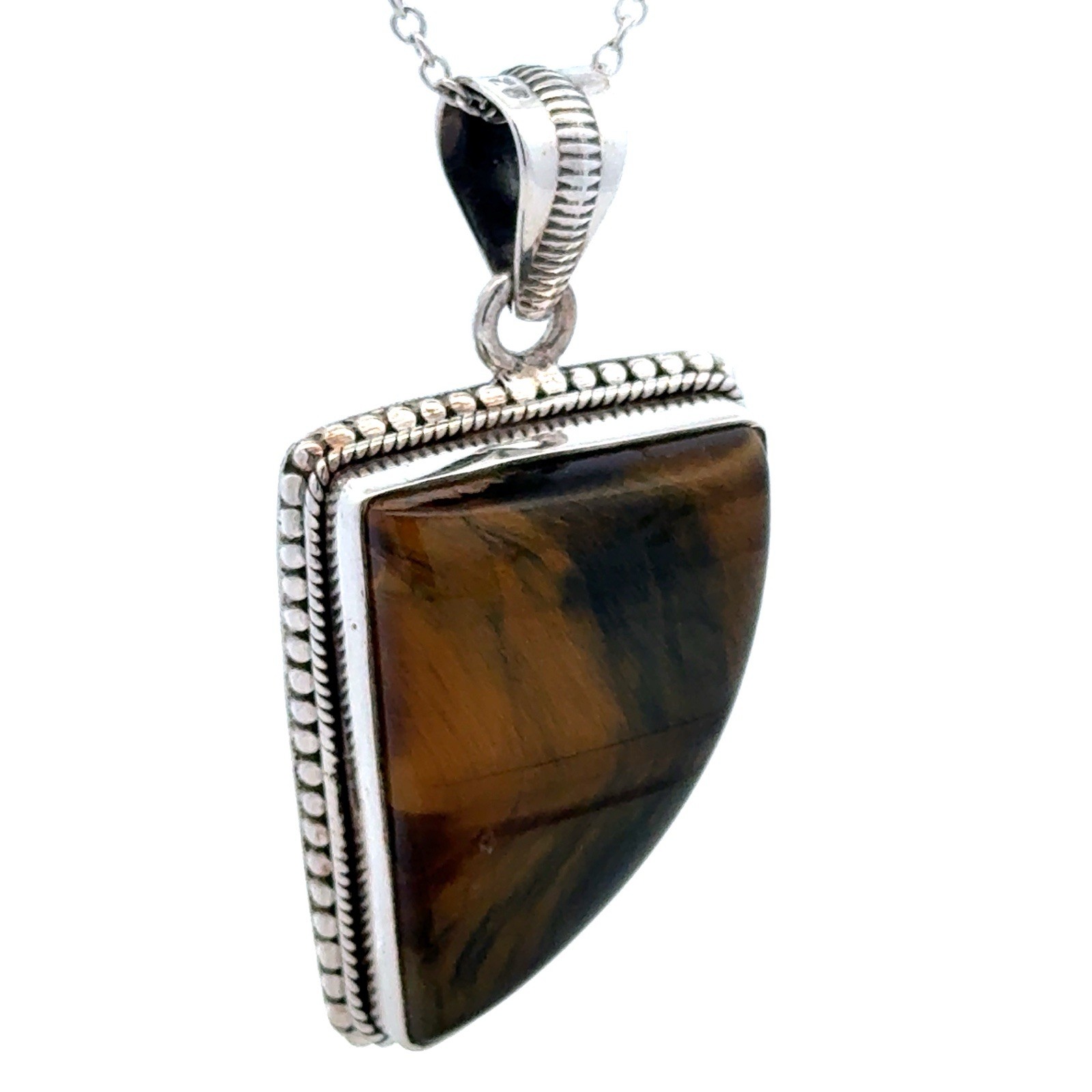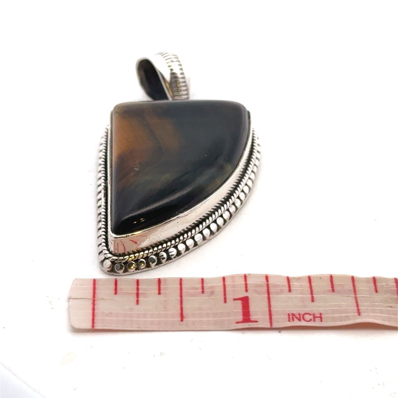 как выглядит Beautiful 925 Sterling Silver Large Tigers Eye Beaded Border Statement Pendant фото