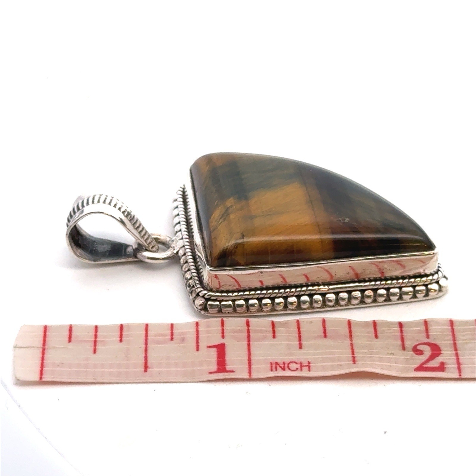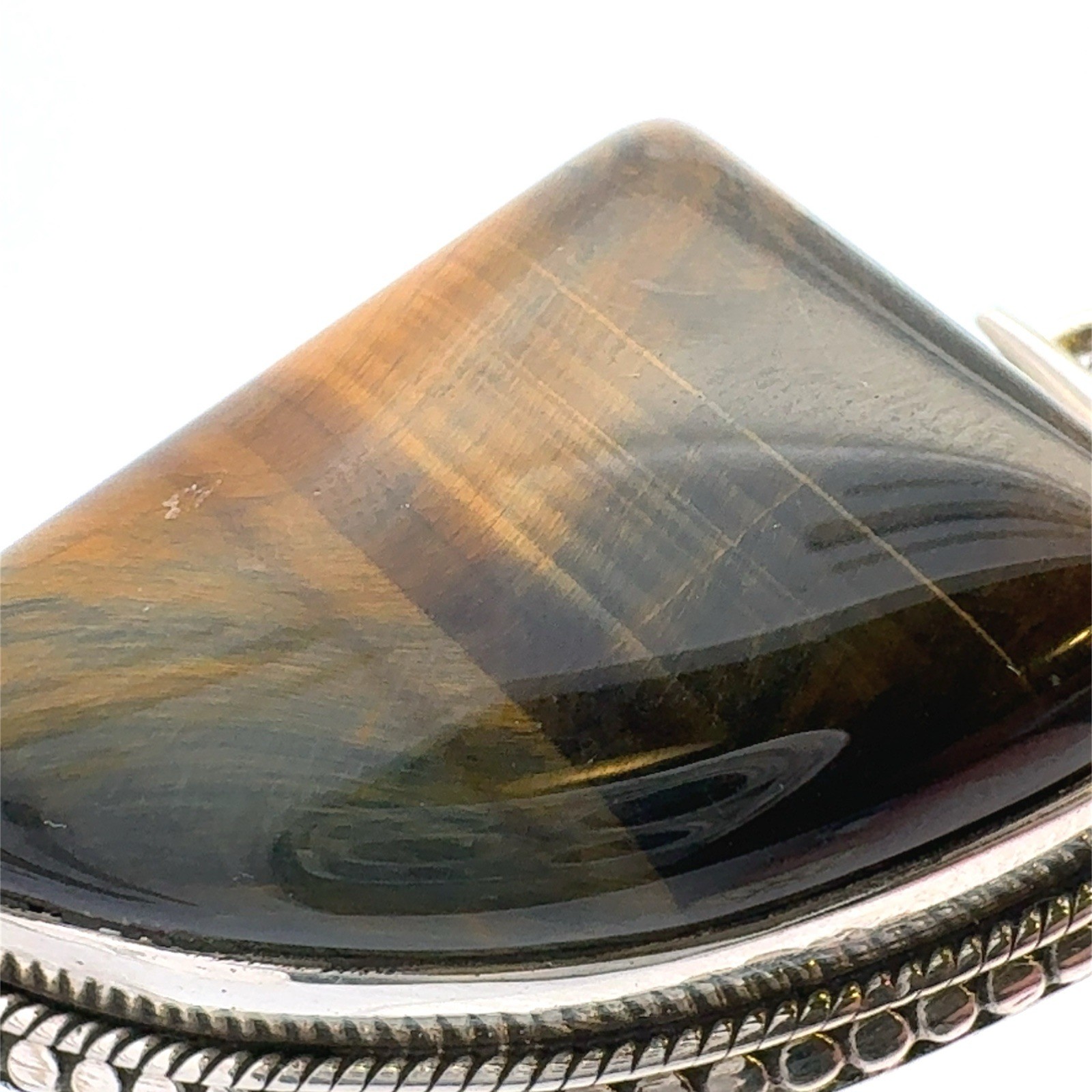 Beautiful 925 Sterling Silver Large Tiger's Eye Beaded Border Statement Pendant