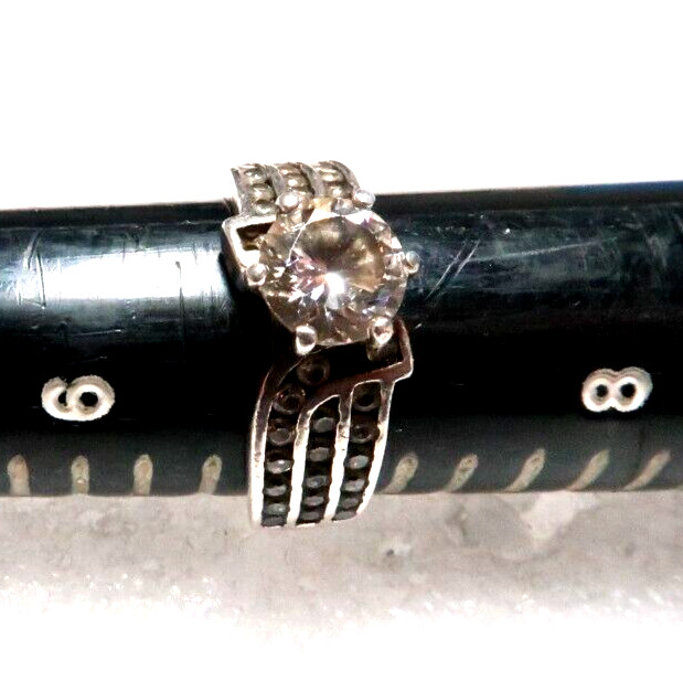 как выглядит VINTAGE CLASSIC STERLING SILVER CLEAR CRYSTAL CZ STONE RING SIZE 7 фото